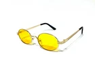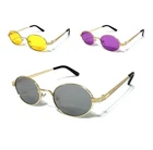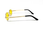 These vintage retro sunglasses offer UV 400 CE protection, colorful lenses and oval shape gold color metal frames . Have rubber pads at the nose area. Great sunglasses for any summer outfits. Lens width - 48 mm, lens height - 38 mm, frame width (from temple to temple)-129 mm, bridge - 24 mm. Free shipping in the United States.