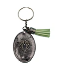 Add a touch of elegance to your keys with this beautiful handmade oval silver resin keychain. The keychain features an angle wings charm and a green tassel that adds a pop of color to your keys. Made in the United States, this keychain is a perfect addition to your collection of handcrafted pieces. The unit quantity is one keychain. This item is perfect for those who love handmade one of a kind items. This keychain is a unique piece that will make a great addition to your collection. DISCOUNTED: The price is lowered about 25% due to slight imperfections. Original price - $5.00, discounted price $3.75
