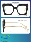 Why we need anti blue light glasses? When we use computers, smart phones, TVs and other devices every day, these electronic products emit a lot of blue light. These blue lights have extremely high energy and can directly penetrate the lens to reach the retina, causing photochemical damage to the retina, which may cause our sleep to be disturbed and make our eyes feel tired. For us, blocking blue light for a long time is the most effective way to reduce damage, and using Teumire anti blue glasses can effectively solve this. If you need to work with computer all the time, this is excellent blue light blocking glasses for you. The role of Teumire anti blue glasses Teumire anti-blue light glasses mainly reflect harmful blue light through the lens surface coating or add anti-blue light factor through the lens base material to absorb harmful blue light, thereby achieving the blocking of harmful blue light and protecting the eyes. Scope of application Teumire anti blue glasses are suitable for wearing when using LED digital display devices such as TVs, computers, mobile phones, etc. However, It is recommended to have two pairs of glasses. Teumire anti blue light glasses are very popular among non-myopia users. They are specially used for computer work and gradually become a fashion. INCLUDES 1* Blue light blocking glasses 1* Glasses cloth 1* Glasses bag 1* Mini screwdriver PRECAUTIONS Please use water and soap to clean, do not use all types of solvents or alcohol. Please use the original accessories to wipe the glasses, do not use dirty cloth or emery cloth. Unique Design - This thick frame blue light glasses feature a comfortable nose pad design that reduces pressure on the bridge of the nose and does not leave dents. The shape of your face is altered by the contours of the cat's eyes, making your face visually smaller; big square glasses frame, stylish metal arm with pearl, personalize your style, wearing black fashion glasses can also be beautiful and confident. It’s Your Lady's Blue Light Blocking Glasses - The large retro rim is one of Lady's favorites, full of Fashion style. Also, they are blue rays glasses for women which are perfect for reading , working and party. Stylish and practical !! The big glasses for women lenses can not only block harmful blue light but also protect your eyes from UV lights. Square Oversized Frame - The big frame glasses for women are great glasses for computer eye strain,our anti eye strain glasses use high quality composite, The black glasses for women are made of the best TAC thermoplastic, this highly advanced nylon-based material is flexibility, memory retention, shock resistant and water proof, is the best choice for eyewear enthusiasts.The Big Non-Prescription Glasses are also a good choice of gift,for your lover,parents,friends... Product Size - Lens Width: 52MM |Frame Width:70MM | Lens Height: 48MM |Frame Height:60MM | Nose Bridge: 18MM | Frame Length: 149MM | Temple Length: 140MM. QUALITY ASSURANCE - If you are not satisfied with the items you received, please contact us to solve the problem until you are satisfied.Your satisfaction and trust are the goal of TEUMIRE.