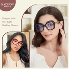 【Gifted Package with Exquisite Leather Pouch】Each pair of eyeglasses comes with a delicate leather pouch and a soft cleaning cloth, offering stylish protection for your eyewear. Exquisitely packaged, it makes an ideal gift for friends and family! 【Advanced Blue Light Blocking Lens】oversized anti blue light glasses for women could filter harmful blue light and glare from digital screens such as computers, phones, and TVs. They maintain HD clear vision with less color distortion, promote better visual comfort, and help you achieve improved sleep. 【Premium Quality Frame with Unique Metal Decoration】These oversizing womens anti-blue light blockers are crafted from a high-gloss polished plastic frame with a sturdy metal hinge.The exclusive designer metal ornament on the temples add a touch of luxury and uniqueness to your eyewear. The one-piece nose bridge ensures an excellent wearing experience without any stress, while enhancing your style. 【Elegant Oversized Design】Featuring a vintage oversized frame with a hint of cateye, these stylish woman's blue light blockers are crafted to complement your sophisticated style. They effortlessly highlight your outfit for any occasion and can be easily matched with different types of attire. 【Product Dimension】Lens Width:55mm(2.17inches)/Lens Height:48mm(1.89inches) /Temple Length:150mm (5.91inches) /Bridge width:18mm(0.71inches)/Total Frame Length:134mm (5.28inches).