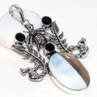 Owhyee Blue Opal Black Onyx 925 Silver Plated Bee Pendant 2.7" Superb Gift JW