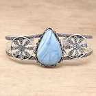 Main Stone Color: Blue Main Stone Creation: Natural Style: Tennis, Bangle, Charm, Cuff Main Stone Shape: Pear Customized: No Secondary Stone: No Stone Main Stone Length: 28 Charm Type: Traditional Vintage: No Theme: Beauty, Bohemian, Ethnic, Family & Friends, Love Antique: No Metal Purity: Unknown Item Length: 7 Closure: Toggle Country/Region of Manufacture: India Era: Undated Main Stone Treatment: Not Enhanced Sizable: Yes Shape: Teardrop Colour: Blue Main Stone Width: 20 Material: Stone, Gemstone, Cotton Gemstone Clarity Grade: Eye Clean Country of Origin: India Base Metal: Brass gtin13: does not apply Occasion: Anniversary, Birthday, Engagement, Mother's Day, Valentine's Day, Wedding Remarks: We Are Manufacturer & Wholesaller Bulk Buy 10% OFF Main Stone: Owyhee Blue Opal Features: Engraved, Stackable, Adjustable Brand: Unbranded Chain Type: Venetian Link Metal: Silver Plated Color: Blue Customised: No Seller Warranty: No Handmade: Yes Setting Style: Bezel Main Stone Colour: Blue Type: Bracelet Wholesale: Yes Cut Grade: Excellent Number of Gemstones: 1 UPC: does not apply