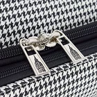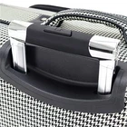 Description Oxford III 29" Expandable Spinner Black-White Houndstooth Durable woven houndstooth 8-recessed spinner wheels with Control Track Self Aligning Technology. With the sound of a click, you'll know that the wheels are adjusting into a straight line to help ensure easy maneuvering throughout your travels. Fog Guard protection helps repel water & stains Hyperlight chassis with injection molded base Trolley has aluminum channel tubes for added strength Ergonomic comfort grip locking trolley handle with TPR Convenient top, side & bottom carry handles RFID safe technology on 20" spinner carry-on & 15" USB 20" Carry-On adheres to new airline carry-on size requirements Full stripe lining Interior has two shoe pockets & zippered storage pocket on the lid New packing cradle for organization & to secure packed items Skid guards & corner guards protect fabric & trolley tubes Spinner uprights expand 2" for additional packing capacity Industrial self repairing nylon zippers Rear ID pocket slot 10-Year Limited Warranty