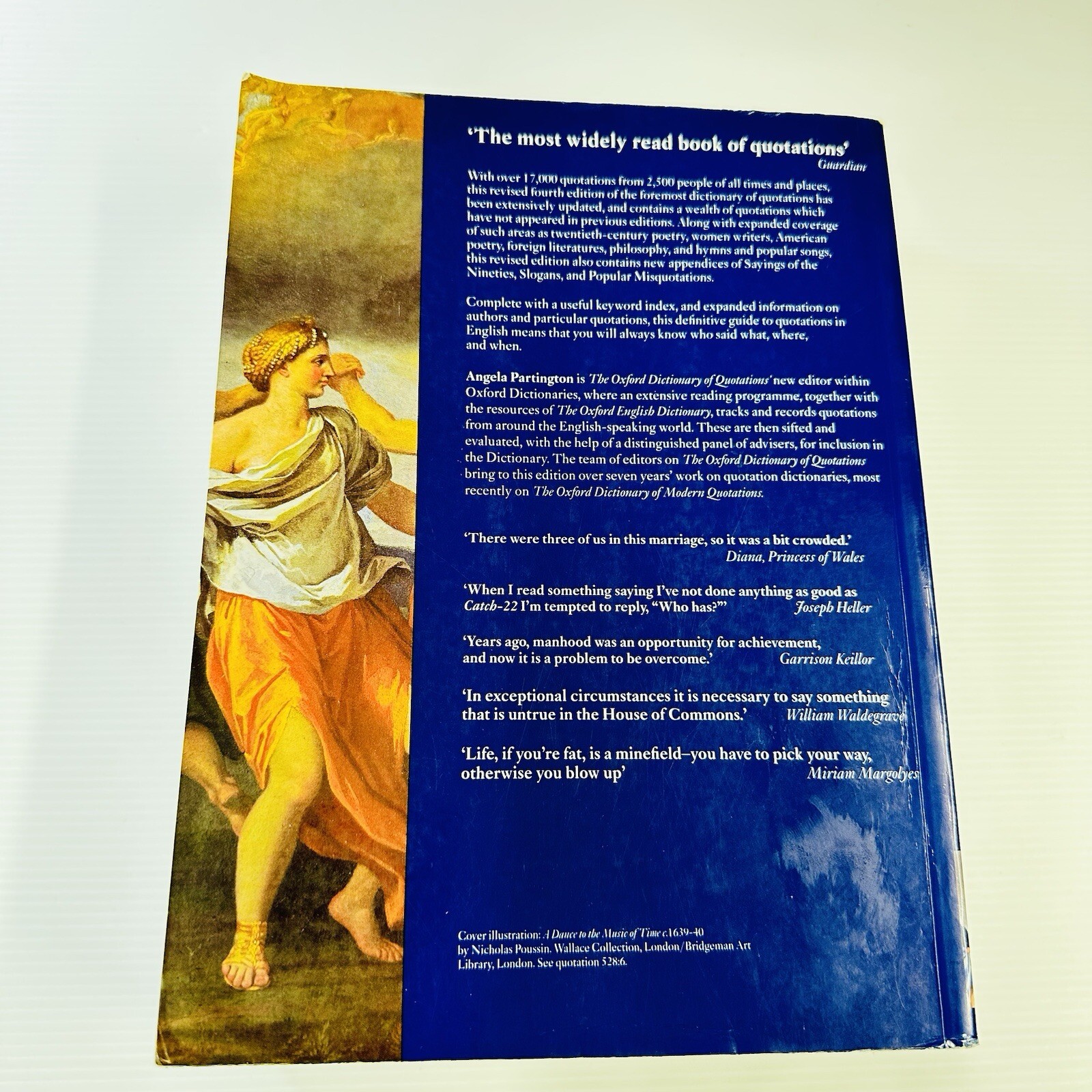 Oxford Dictionary of Quotations Large Paperback Revised 4th Edition 1996 A vintage reference book featuring a collection of quotations that is perfect for any book lover's collection. As these items are pre-loved please expect there to be page discolouration, small marks, sticker marks from pricing labels, spine creasing and possible tears for aged books. May have been personalised with a written name or dedication. Photographs form part of the description. All items are from a Smoke Free Environment. IMPORTANT PLEASE READ THE FOLLOWING AUSTRALIAN SELLER Items will be mailed with Australia Post Tracking. All postage is sent via Australia Post to your eBay listed address and I accept no responsibility for lost damaged or stolen postal items. Postage includes packaging and handling. If you don’t like the postage/packaging/handling charges, please don’t purchase. Items will be posted 3 times per week during Western Australian (WA) school term and 2 times per week during WA school holidays. Sorry no pick ups. International Buyers - Please ensure you are allowed to import the items you are buying. You will be responsible for any additional customs charges and import duties. Once I have received your feedback and know that you have received the goods, I will proceed to leave you feedback.