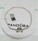 New comes with bracelet and dust bag This PANDORA Moments Butterfly Clasp Snake Chain Bracelet is a beautiful piece of jewelry crafted from sterling silver with a snake chain design. The bracelet features a clear cubic zirconia stone set in the center, showcasing a butterfly shape as the main charm. Perfect for various occasions such as engagements, weddings, birthdays, and anniversaries, this bracelet is a versatile and elegant accessory to add to any jewelry collection. The high-quality craftsmanship and timeless design make it a perfect gift for special someone, whether it's for Mother's Day, Christmas, or any other occasion.