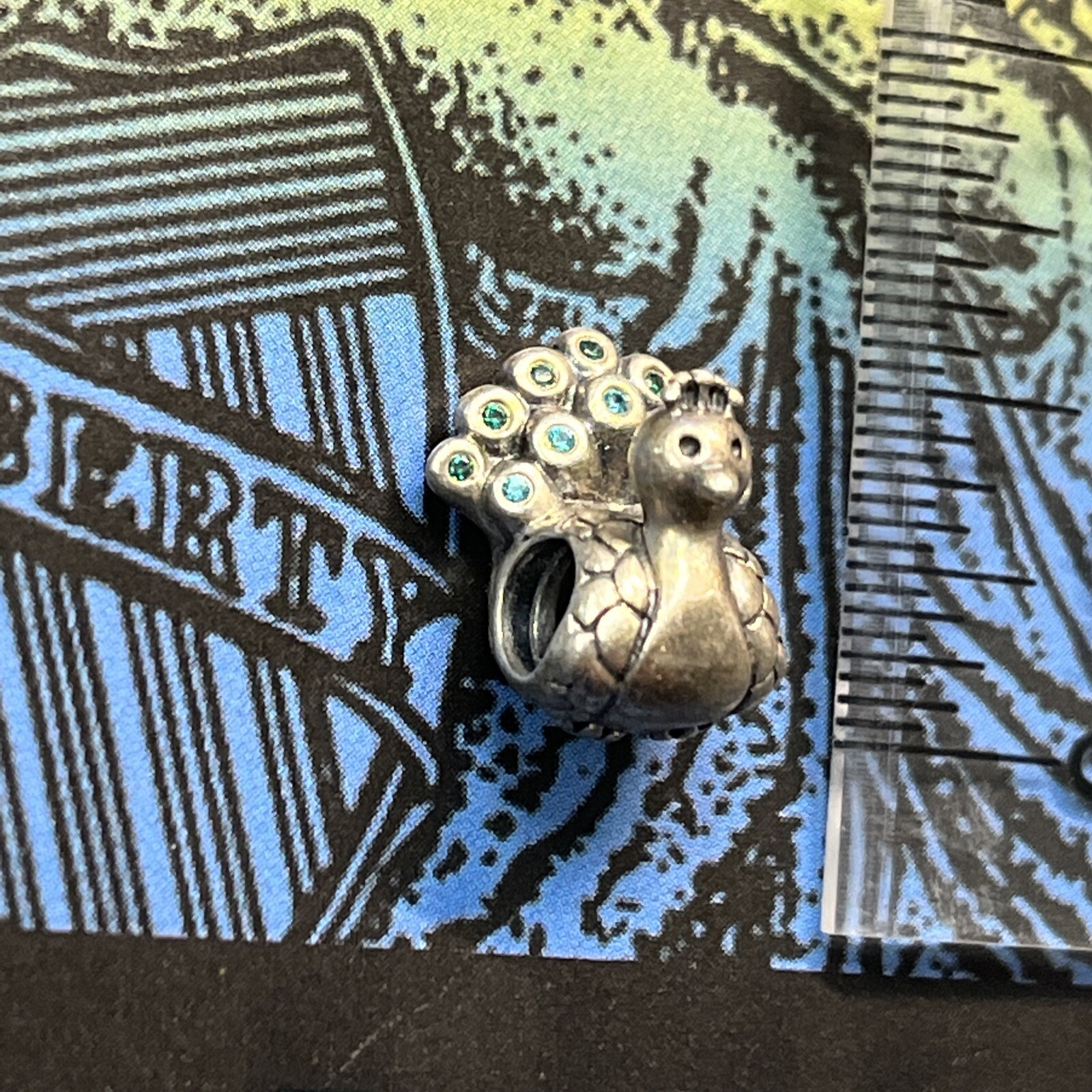 PANDORA Sterling Silver Green Cubic Zirconia 791227MCZ Peacock Bracelet Charm. Condition is Pre-owned. Shipped with USPS Ground Advantage.