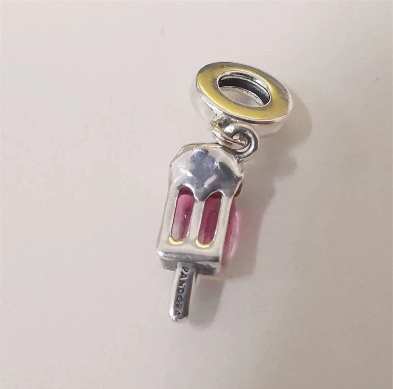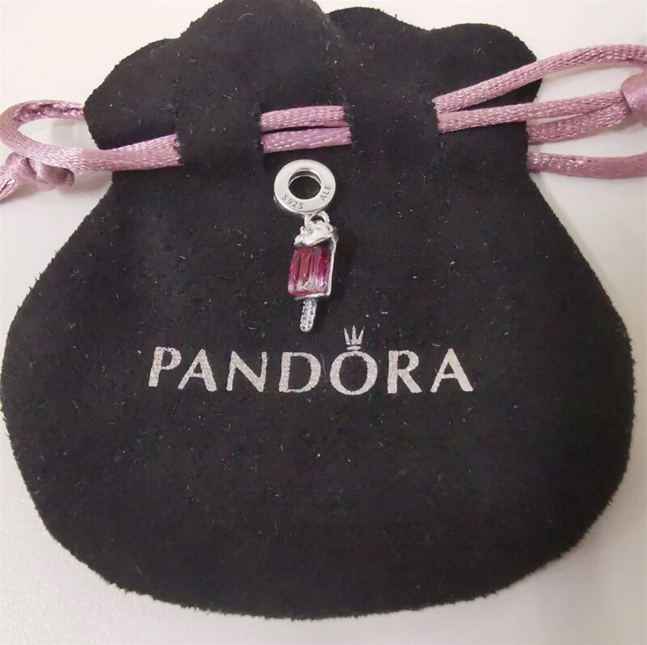 New comes with dust bag The Authentic PANDORA Sterling Silver Sprinkled Popsicle Dangle Charm is a charming and whimsical piece of jewelry perfect for all occasions. Made from high-quality S925 Sterling Silver, this charm features a pink popsicle shape with clear enamel detailing. The dangle charm is adorned with a popcicle theme, making it a delightful and playful addition to any charm bracelet or necklace. Designed by the renowned brand PANDORA in Thailand, this charm is a beautiful and unique accessory for any jewelry collection.