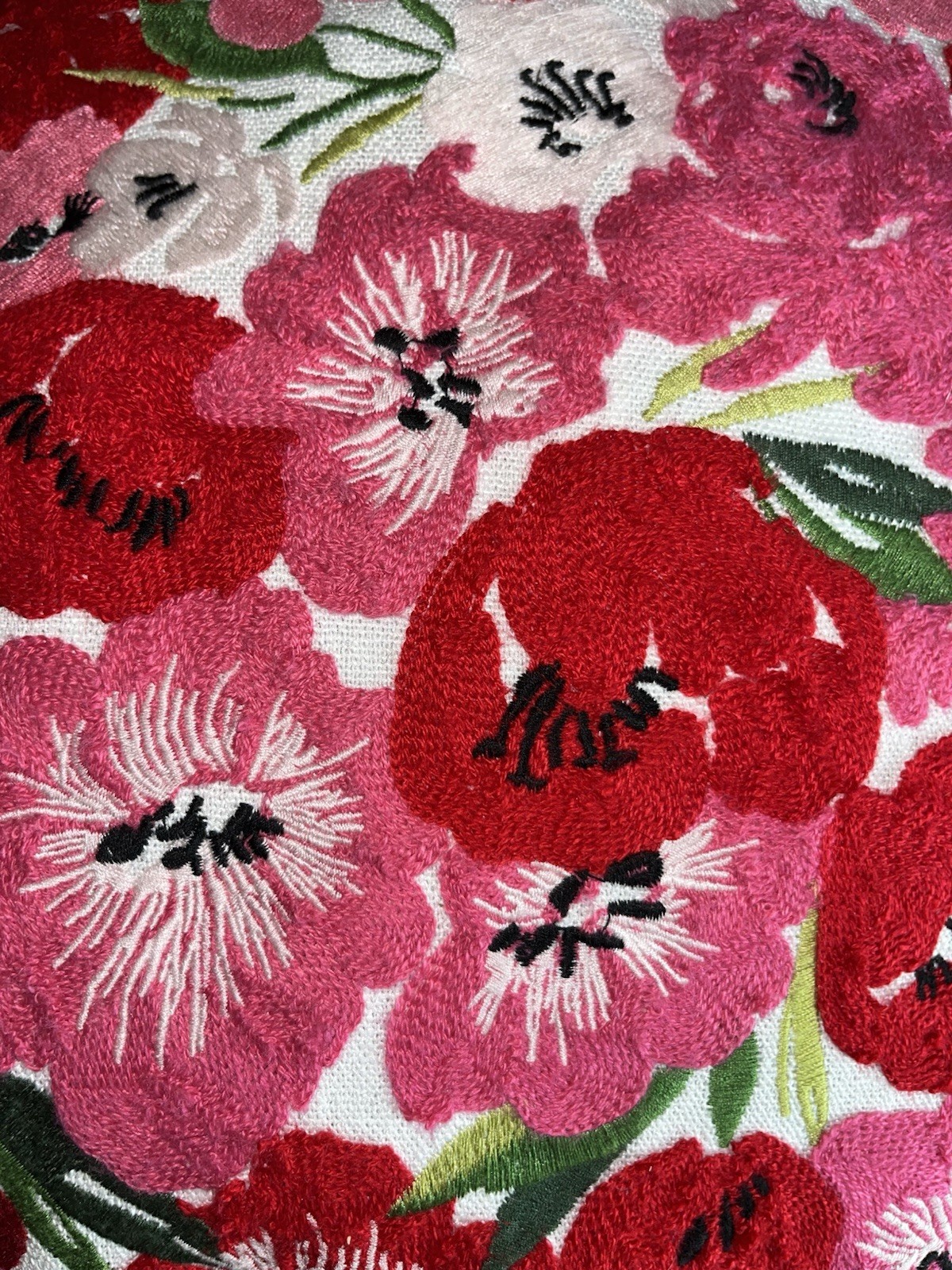 Papyrus Garden 14" Round Embroidered Poppy Flower Pillow Add a touch of botanical elegance to your home with this 14-inch round decorative pillow from the Papyrus Garden collection. Featuring a vibrant bouquet of embroidered poppy flowers, this cushion offers rich texture and artisanal detail. Key Features: Intricate Embroidery: Beautifully detailed red poppies on a high-quality fabric base. Shape & Size: Unique 14-inch round design, perfect for armchairs or sofas. Versatile Style: Complements boho, farmhouse, or traditional garden-themed decor.