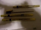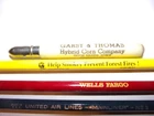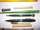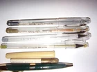 My note: ** NOTE : ITEMS SHOWING PRIORITY SHIPPING, MAY QUALIFY FOR THE NEW "USPS Ground Advantage". IT INCLUDES UP TO $100 INSURANCE & SEEMS TO ARRIVE PROMPTLY. CONTACT ME IF THAT OPTION DOESN'T SHOW. IF YOU ALREADY PAID , BUT ITEM NOT PACKAGED YET, REFUNDS WILL BE GIVEN ON SHIPPING PRICE DIFFERENCE . 1) BULLET ADVERTISING PENCIL plastic or bakelite GARST & THOMAS "HYBRID" CORN CO. E.E. HATCHER MINCO, OK 2) SMOKEY THE BEAR 3) UNITED AIR LINES " MAINLINER" 4) WELLS FARGO 5) 2 WESTERN U. 6) WESTERN UN ( MECHANICAL ) 7) 2 WESTERN U 8) GLODT NOVELTY SHOP 6438-253 BROADWAY DENVER, CO 9) PUBLIC SERVICE COMPANY of COLORADO 10) skinny PUBLIC SERVICE COMPANY of COLORADO 11) BULLET LEAD COVER---POTENT COPYING 12) AUSTRIA MEPHISTO COPYING by L&C HARDTMUTH 13) DIABLO COPYING USA 14) GENERAL'S COPYING USA 15) arrow point tip potent copying USA 16) SCHWARTZ SUPPLY BLACKSMITH & BUGGY WORK rt3 SEYMOUR, MO BOX 197 17) twist ballpoint - metal refills TEDDY BEAR REUNION CLARION, IA "2005" 18) green - wood PEN NIB HOLDER 19) METAL PENCIL TIP PROTECTOR stamped BELL SYSTEM other stamping info too small to read 20) GREEN MECHANICAL PENCIL stamped BELL SYSTEM KS8300 21) W. UNION MECHANICAL PENCIL black 22) 2 BAKELITE (?) NIB PEN HOLDER ??? 23) BULLET STYLE PENCIL TIP PROTECTOR SNOW - WHITE EBERHARD PENCIL 24) 2 CLEAR PENS GELL 2000 METALLIC P.I.I. KOREA (dried up ??) 25) 2 CLEAR PENS the ULTIMATE GELL METALLIC AMERICAN CRAFTS (dried up ??) 26) 3 CROSS PEN REFILLS IN ORIGINAL CASE (dried up or used ??) **** SEE OTHER LISTING FOR 1938 PENCIL BOX … . MULTIPLE WINNING BIDS -- advise me of such -- I do combine shipping & it usually saves on shipping. If you have any questions, PLEASE E-MAIL. **** ` all items sold as is **** . Check my other listings for other neat items ..*** GOOD LUCK! . .... < INTERNATIONAL BUYERS -- IF NOT REQUIRED BY EBAY, WAIT FOR MY INVOICE TO ALLOW ANY SAVINGS ON SHIPPING. IF ALREADY PAID I WOULD REFUND ANY SAVINGS . EBAY BUYER/SELLER SINCE 1995 or 1996
