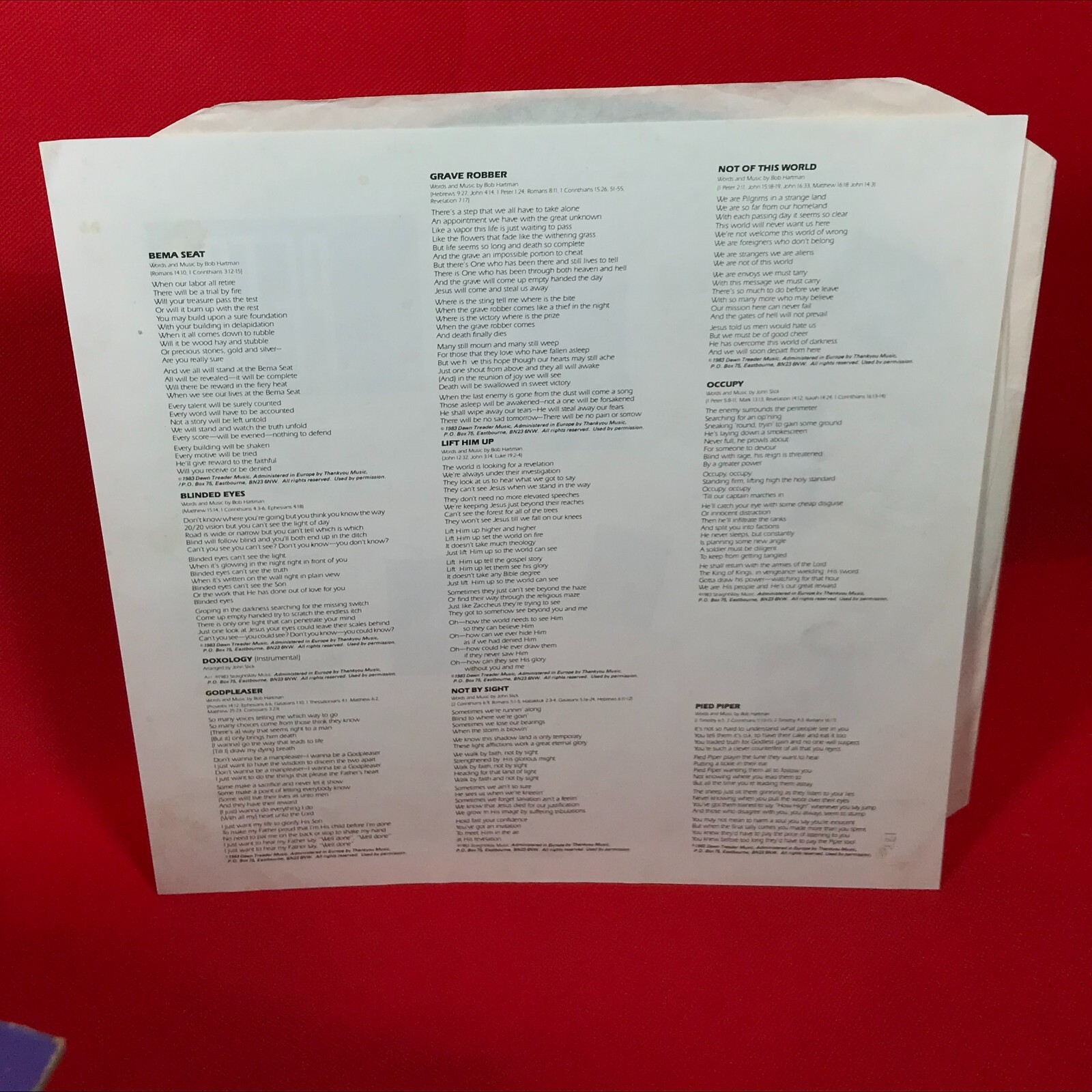 PETRA Not Of This World - 1984 UK vinyl LP, complete with printed inner. Kingsway Music KMR 418 A1 Visions (Doxology) 2:04 A2 Not Of This World 4:49 A3 Bema Street 3:54 A4 Grave Robber 4:18 A5 Blinded Eyes 5:33 B1 Not By Sight 3:20 B2 Lift Him Up 3:26 B3 Pied Piper 4:00 B4 Occupy 3:28 B5 Godpleaser 4:36 B6 Visions (Reprise ) (Doxology) 2:28 Record Condition : Excellent Sleeve : Minor shelfwear (see photo) Please check out our other items !