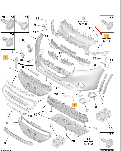 $ 80.97PEUGEOT 208 MK2 P21 Front Bumper Plug 98402852XT Genuine OEM
