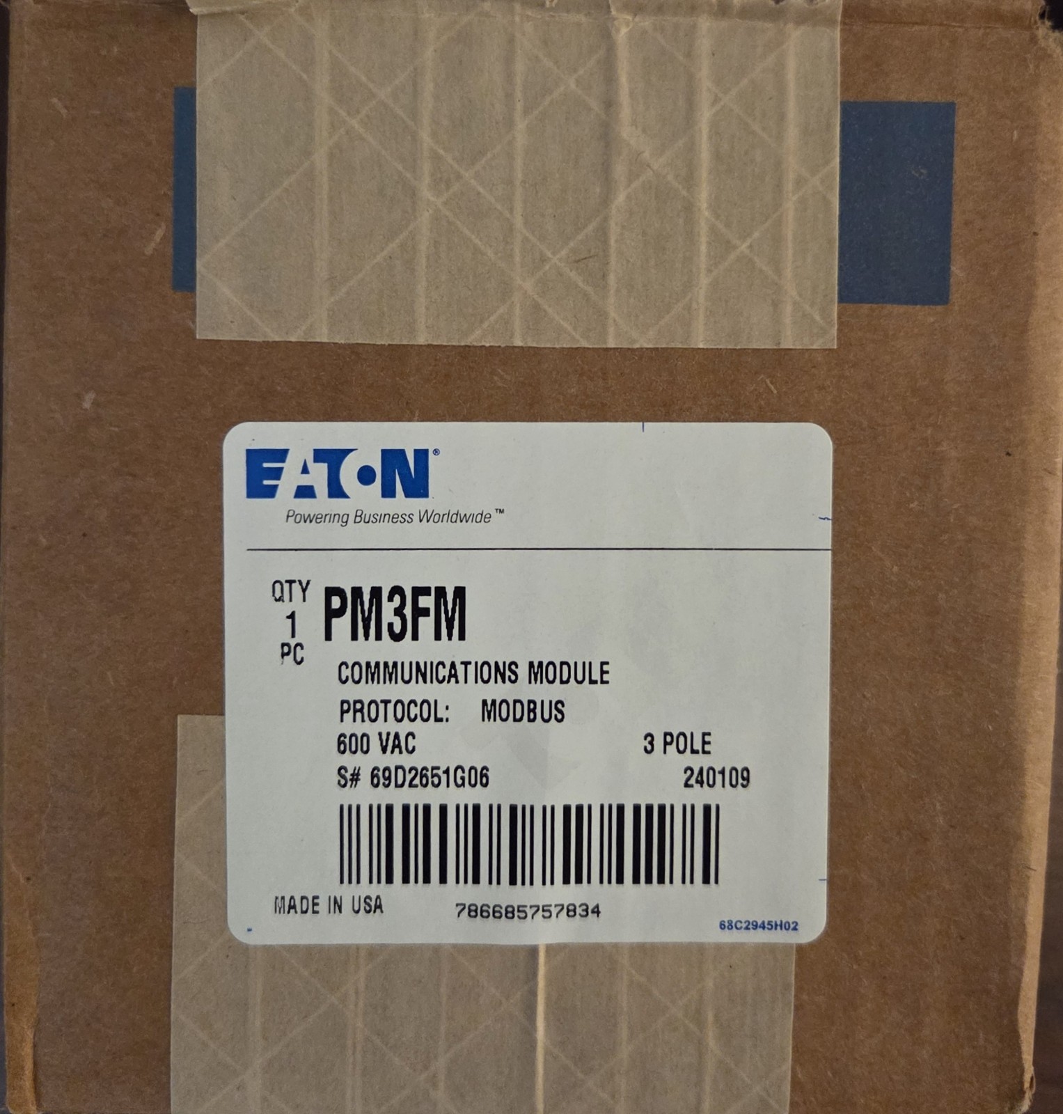 Only used for demos/training- The PM3FM - Power/Metering Module by Eaton is designed for industrial applications up to 600V and 250A of maximum amperage. It features a digital control style, screw terminal electrical connection, and is made of durable polycarbonate and thermoplastic materials. This 3-phase module is designed to be impact resistant and operates at a temperature range of -20°C to 60°C. With its compact dimensions of 5" x 5" x 5", the PM3FM is a reliable choice for circuit breaker and disconnect applications in a variety of industrial settings.