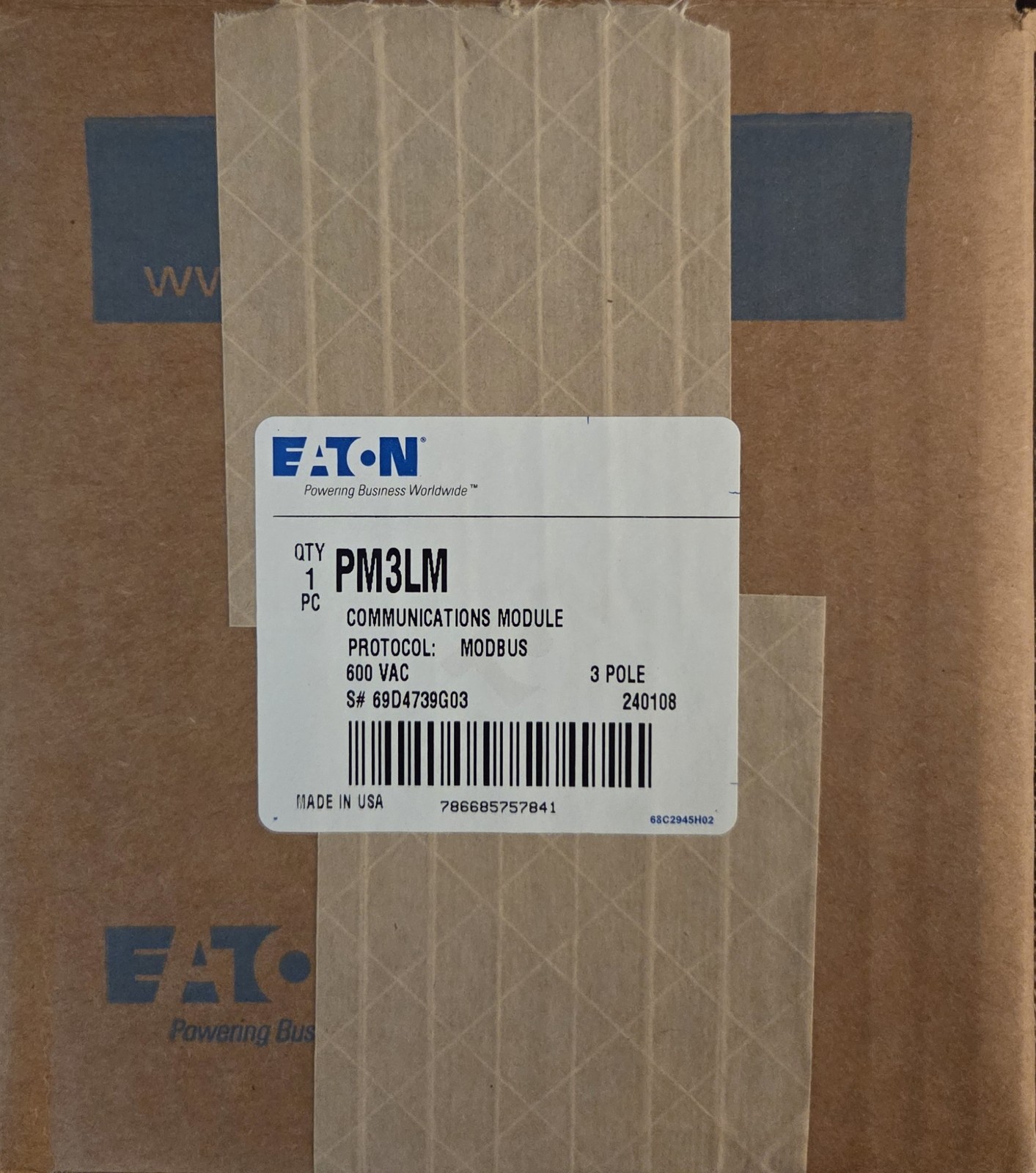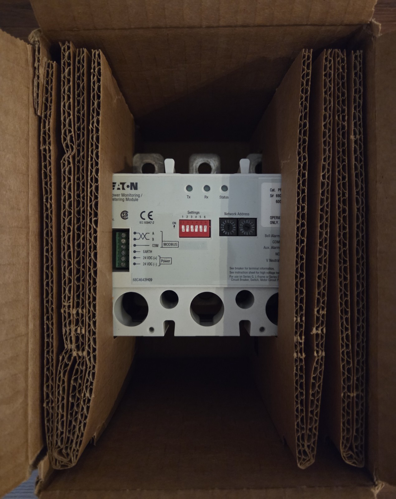 Only used for demos/training- The PM3LM Circuit Breaker PM3 Modbus Communication Module by Eaton is a reliable and high-quality electrical component designed for industrial applications. With a maximum amperage of 630A and the ability to handle 3 phases of AC current, this unit is perfect for protecting electrical circuits in demanding environments. The polycarbonate and thermoplastic materials used in its construction make it impact-resistant, ensuring durability and longevity. Additionally, the digital control style and IP20 rating provide advanced functionality and safety for your electrical system. This module is a crucial component for ensuring the smooth operation of your electrical setup.