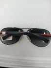 PRADA Aviator Sunglasses Frames, ITALY, SPS 51 N 63 12 1BO 5W1. Condition is new with tags retail $355.00. Shipped with USPS First Class. Sunglasses were either a store display item, overstock it, or customer return. Sunglasses have light scratches on the right lens. Has small coating defect on right lens.