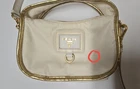 Prada +Y2K= Perfection! The PRADA Mini Oro Tessuto Nylon Gold Y2K Shoulder Hobo Bag is a stylish crossbody bag perfect for fashion-forward women. Made of lightweight nylon with a Saffiano leather exterior, this limited edition bag features a gold hardware color and signature logo accents. The adjustable strap and inner pockets make it convenient for everyday use, while the mini size adds a touch of luxury to any outfit. With its iconic PRADA Tessuto design and Y2K aesthetic, this bag is a must-have for those who appreciate high-end fashion and quality craftsmanship. **Adorable bag with signs of use. There's a small dot on the front of the bag and some variations in the color of the gold, nylon edges due to rubbing. See pictures.