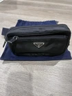 The PRADA Re-Nylon and Saffiano Leather Belt Bag is a stylish accessory designed for both men and women. Crafted with black nylon and accented with Saffiano leather, this belt bag exudes sophistication and functionality. Perfect for hands-free convenience, this bag is ideal for carrying essentials while on the go. The renowned PRADA brand ensures quality craftsmanship and timeless style, making it a must-have accessory for any fashion-forward individual.