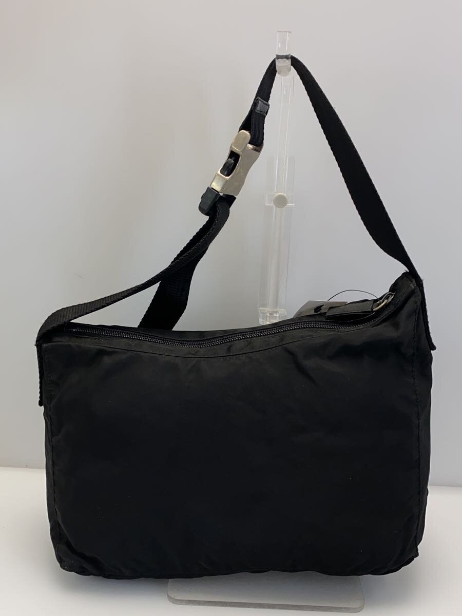 $ 169.41PRADA Black Nylon Shoulder Bag with Triangular Logo Plate and Outer Pocket