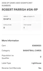 For sale is a PSA 6 graded 2007 SP Game Used Robert Parish Significant Numbers GU Jersey Auto #/100 trading card. The card features Robert Parish, a legendary Boston Celtics player from the National Basketball Association (NBA). This short print card is from the 2006-07 season and is a must-have for any basketball fan or collector. The card is in excellent condition and comes from a smoke-free home. It includes a unique autograph and game-used jersey piece, making it a valuable addition to any sports trading card collection. Don't miss out on the chance to own this rare and highly sought-after card!