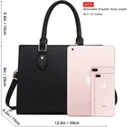 12"L x 5.2"D x 9"H - Synthetic Leather - Women's Crossbody Bag Core Parameters Material: Synthetic Leather (100% eco-friendly) Size: 12"L x 5.2"D x 9"H (30.5cm x 13.2cm x 22.9cm) Weight: 1.74 lbs (0.79 kg) Technical Specifications • Different Ways to Carry: Tote/Handbag/Crossbody/Shoulder/Satchel • Removable adjustable strap (13-25"/33-63.5cm) • Multi-pocket: 2 compartments, 2 zippered & 2 slip pockets • Fits iPad, phone, cosmetics, books Package Information Dimensions: 12" x 5" x 9" (30.5cm x 12.7cm x 22.9cm) Weight: 1.74 lbs (0.79 kg)