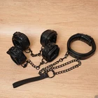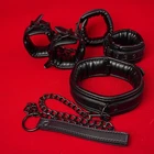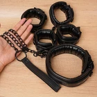 Discreet Packing : 1. 100% discreet shipping guarantee on package and no wirting on the package. 2. Nothing written on the packaging or label - It is impossible to tell what is inside the packaging. Feature: Condition:100% Brand New Size: free size fits for most Material: Good quality PU Leather/Real leather Color: Black(As picture shown) The Chains on the cuffs are all removable. Completely safe and entirely satisfying to the touch Healthy and non-toxic products. Size: Handcuffs Length: 23cm, adjustable: 16-26cm Anklecuffs Length: 28cm, adjustable: 21-31cm The metal chain between cuffs is about 15cm long. Collar Length: 39cm, adjustable: 31-43cm Traction chain length of about 58cm, the handle is about 16cm long. Notes: 1. Due to the difference of light and screen setting, The color of the object may be slightly different from the images. 2. Manual measurement, for measuring methods and technique is different, there may be 1-3 cm error. 3. To protect your privacy, all items will be carefully packed in normal packaging without return address or labeling ambiguous content. Contact: Please contact us first if you have any questions. Thank you!