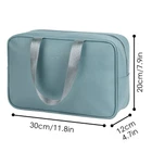 LARGE CAPACITY - Size 11.8"x7.8"x4.7”/30x20x12cm, one main compartment and 3 small pockets could easily fit common-size toiletries as well as makeup like shampoo, conditioner, lotion, toothpaste, toothbrushes, hair brush, shaving kit and a few extra items NOT BULKY DESIGN - large size yet compact design, weighing only 8.8 ounces WATER-RESISTENT - Water-resistent and durable fabric protects your gear from spills, easy to wipe down CONSISTENT QUALITY - Soft fabric, nice lining, reliable zipper, zip-top closure CUTE PRESENT & VERSATILE - Compact, sturdy, portable, lightweight, which makes it good for business trips, travel, gym, camping, home use and more. It would be also a very cute present for women