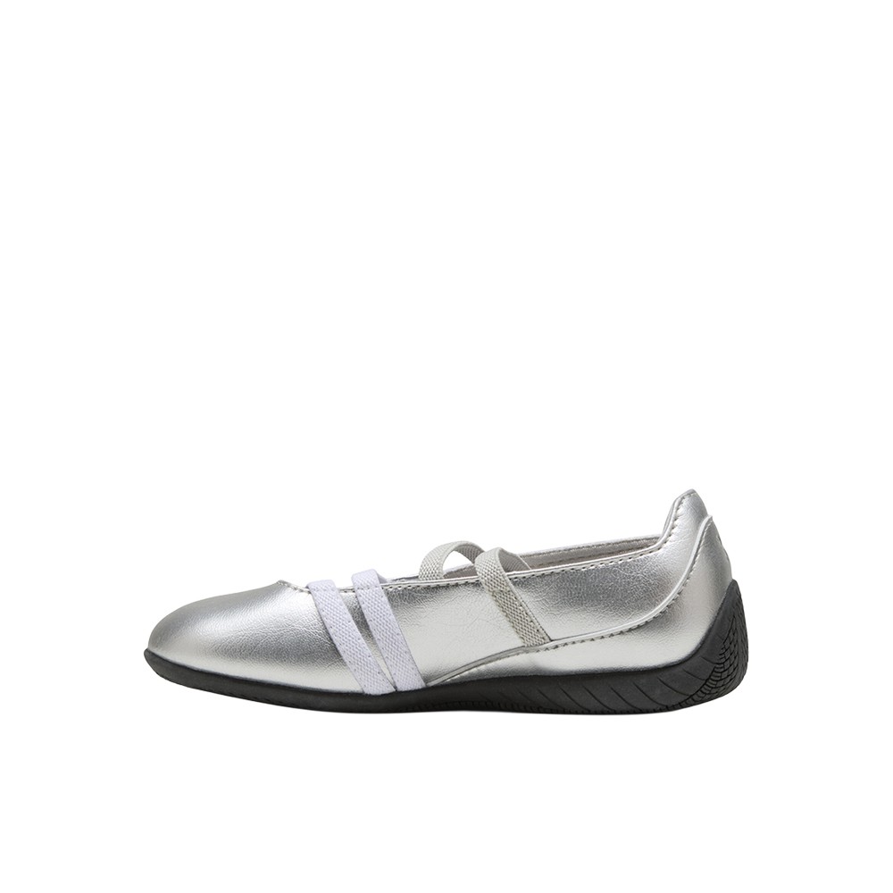 Speedcat Ballet Metallic Slip On Sneakers (Little Kid-Big Kid) Product Details Width: Regular Toe type: Rounded Closure: Laces Heel type: Flat PUMA branding details Color: Ash Gray/Puma White Speedcat Ballet for Kids brings a fresh twist to an iconic look. Inspired by ballet, these sneakers mix graceful details with bold motorsport vibes for a style that’s all about fun and individuality. Lightweight, comfy, and perfect for everyday adventures—this low-profile design lets little trendsetters shine their way. Additional Details Manufacturer Color: Ash Gray/Puma White Color: Silver Occasion: Casual Gender: Girls Age: Youth Brand: