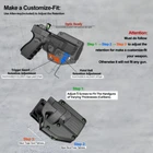 Mega-fit Holster / Versatile Holster / Universal Holster, Fits Most Popular Full Size and Compact Pistols, Fits Pistols with Red Dot, Fits Pistols with High Front Sight I tem D escription : Holster fit Beretta Beretta 92FS 9mm Luger Beretta 92X Performance 9mm Luger Beretta 92 9mm Luger Beretta 92X Centurion 9mm Luger Beretta 92S Full Size 9mm Luger Beretta 92G Elite LTT 9mm Luger Beretta M9 9mm Luger Beretta M9A1 9mm Luger Beretta M9A3 (without laser) 9mm Luger Beretta M9A4 9mm Luger Beretta PX4 Storm Full Size 9mm Luger Beretta PX4 Storm Compact 9mm Luger Beretta PX4 Storm Subcompact 9mm Luger Beretta APX Full Size 9mm Luger Beretta APX Centurion 9mm Luger Beretta APX Compact 9mm Luger Beretta APX Carry 9mm Luger Beretta APX A1 Carry 9mm Luger Beretta APX A1 Full Size 9mm Luger Beretta APX A1 Compact 9mm Luger .40 S&W Beretta 96A1 .40 S&W Beretta 96 Brigadier FS .40 S&W Beretta PX4 Storm Full Size .40 S&W Beretta PX4 Storm Compact .40 S&W Beretta Zigana C .40 S&W .45 ACP Beretta PX4 Storm Full Size .45 ACP Beretta PX4 Storm Compact .45 ACP Attention: While you have the holster, please follow these three steps to adjust its retention for a customized fit, as shown in the listing picture. Proper adjustment ensures your weapon is secure. Without it, the holster may not fit any firearm correctly. 1) After adjust the retention , Weapon Compatibility - Outside Waistband Tactical H olster Fit Holster perfect work with suppressor sights, and fit all the capacity 9mm,10mm, .40 cal, .45 cal a n d 22LR for the gun. Compatible-Beretta Fits Beretta 92, 92X Centurion, 92S Full Size . 92G ELITE LTT , 92A1, 92FS, PX4, PX4 STORM, APX, M9A1, M9A3 without laser, APX Centurion 9mm, APX Compact 9mm , APX A1, APX A1 compact , M9A1 Compatible-Bersa Fits Bersa Thunder 9 Pro XT Compatible-BRG Fits BRG USA BRG9 Elite 9mm Compatible-Browning Fits Hi-Power, Hi-Power 640, Hi-Power 3D, Browning Mark III Compatible-Canik Fits TP9 Elite Combat, TP9 SFX, TP9 SF,TP9 Elite-S, TP9SA Compatible-Caracal Fits Caracal EF, Caracal F, Caracal F Gen II Compatible-Colt Fits Colt 1911-3'', 1911-4'', 1911-5'', M1911 A1, M1911, Colt 1911 .45, Colt 1911 9mm Compatible-CYMA Fits CYMA CM127 Compatible-CZ Fits CZ P07, P09, 75 SP-01 Shadow, Shadow 2, P-10C, P-10 F, 75, 75B, 85 Compatible-FN Fits FNX-45, FN-509 Compatible-Girsan Fits Girsan MC28, Regard MC 9mm, MC28 SA 9mm, MC 14T, MC P35 PI LW, MC28 SA, Regard MC, 1911 MC Compatible-Glock Fits Glock 17 Gen(1,2, 3, 4, 5), Glock 19 Gen(1,2, 3, 4, 5), Glock 19X, Glock 21, 22 Gen(1,2, 3, 4, 5), 23 Gen(1,2, 3, 4, 5), 24, 26, 27, 30, 31, 32, 33, 34, 35, 36, 41, 42, 43, 43X, 43X, MOS, 44, 45, 47, 47 mos, 48. Compatible-Heckler & Koch Fits H&K USP and H&K USP Compact, SFP9,VP9 Compatible-Hi-Point Fits Hi-Point C9 Compatible-HS Fits HS-9 Compatible-ISSC Fits M22 Gen2 Compatible-IWI Fits Masada 9mm, Jericho 941 9mm Compatible-Jericho Fits Jericho 941 RS Compatible-Kahr Fits CW45 Compatible-Norinco Fits Norinco NP22 Compatible- Palmetto State Armory Fits PSA Dagger Compact 9mm, PSA Dagger Full Size S 9mm, PSA Dagger Full Size SX 9mm, PSA Dagger Micro 9mm, PSA 5.7 Rock Compatible-Para ordnance Fits Para ordnance P12-45 Compatible-PREXER Fits Wist 94 Compatible-Radom Fits VIS 100 Compatible-Rock Island Armory Fits Baby Rock 380, BBR 3.10 45ACP, BBR Standard 380ACP, M200, M206, 1911 , SA 1911 Compatible-Ruger Fits Ruger MAX-9, Security-9, Security 9 Compact/ Pro/ Standard , Security 380, Ruger-5.7, Ruger American, SR1911, SR22, RSR9, SR9C, SR40, SR45, PRESCOTT 57, LC9 , Compatible- SCCY Fits CPX-1 (Gen 1 2 3), CPX-2 (Gen 1 2 3) , CPX-3 (Gen 1 2 3) , DVG-1, CPX-1RD / CPX-1RD Compatible- Sarsilmaz Fits AR-24 , AR-24K, B6, B6C, B6C7.65, B6C-LR, B6C-S, CM9, K-12 Sport, K-12 Sport X, K11, K2 45, K2 45C, Kilinc 2000 Light, Kilinc 2000 Mega, P8 L, P8S, SAR 9, SAR 9 C, SAR 9 METE Compatible-Shadow Systems Fits CR920 Elite, DR920, DR920 FS, DR920P, MR920 Compatible-Sig Sauer Fits Sig Sauer P365, P365 BB , P365X / XL/ SAS/ X Macro, P220, P225, P226, P228, P238, Sig Pro 2022 (Germany or USA version), SP2022 SAR, P938, P320, P229, P250, P320 Compact, P320 with Lima Laser Compatible-Smith & Wesson Fits Smith & Wesson M&P 9MM, M&P M2.0 9MM, M&P 40, M&P 45 ACP, M&P 40, M&P .40 C, M&P .45, M&P 9 M2.0, M&P Shield 9mm, 40, 45, M&P Compact 9, 40, SW9, SW9V, SD9 VE, SD40 VE, SD40, M&P 40 M2.0, 380 SHIELD EZ , 9 SHIELD EZ , M&P9, 9 SHIELD ,CSX, S&W 1911 Compatible-Springfield Fits Springfield XD-9, XD-40, XD-45, XD-S, XD-S .45 ACP, XDM-9, XDM-40, XDM-45 ACP, XDE-9, HELLCAT, HELLCAT PRO, Hellcat OSP / RDP 9mm , XDS-45, XDS-9, XDM , XDM elite 10mm , 1911 SA , 1911 Compatible-Steyr Fits Steyr Arms C9-A1, Arms C9-A2, Arms C9-A2 MF Compatible-Stoeger Fits STR-9 Compatible-Tara Fits TM9 Compatible-Taurus Fits Taurus Millennium, Taurus 100, Taurus 92, PT111 G2, G2C, G3, PT24/7, GX4, PT111, PT132, PT138, PT140, PT145, PT745, PT938, T800 series and Pro version, PT809, PT709, PT24/7, PT24/7-OSS, PT809C, PT840C, G3, TH9, Taurus 1911, Taurus PT 92 AF, TX22 compact, TX22 22LR Compatible- Tisas Zigana Fits PX-9, Tisas zig m1911 duty .45, Tisas M1911 .45 Compatible-Walther Fits Walther P99 QA, PPQ(M1 M2 M3), P88 9mm, PPQ Compatible-Zastava Fits EZ9, EZ40 ( Without embedded chassis, and no flashlight style ) 2) Holster with paddle - Push side buttons to achieve the fast opening and closing, unique design allows for belt carrying or vest carrying, perfectly used by duty holsters, uniformed law enforcement officers, security personnel, military personnel, private persons, and shooting sports holsters. And it fits closer to the body which can achieve better concealment under clothes. 3) Secure Level II Retention - Auto-locking system restrain pistol in OWB holster to ensure ultimate safety, activate the release by pressing the button with the index finger to achieve gun access . 4) Adjustable Carry Angle - Easily set Holster 360 degrees to your desire position with Allen key, compatible belt width up to 2 inches . 5) Tough, Durable Materia
