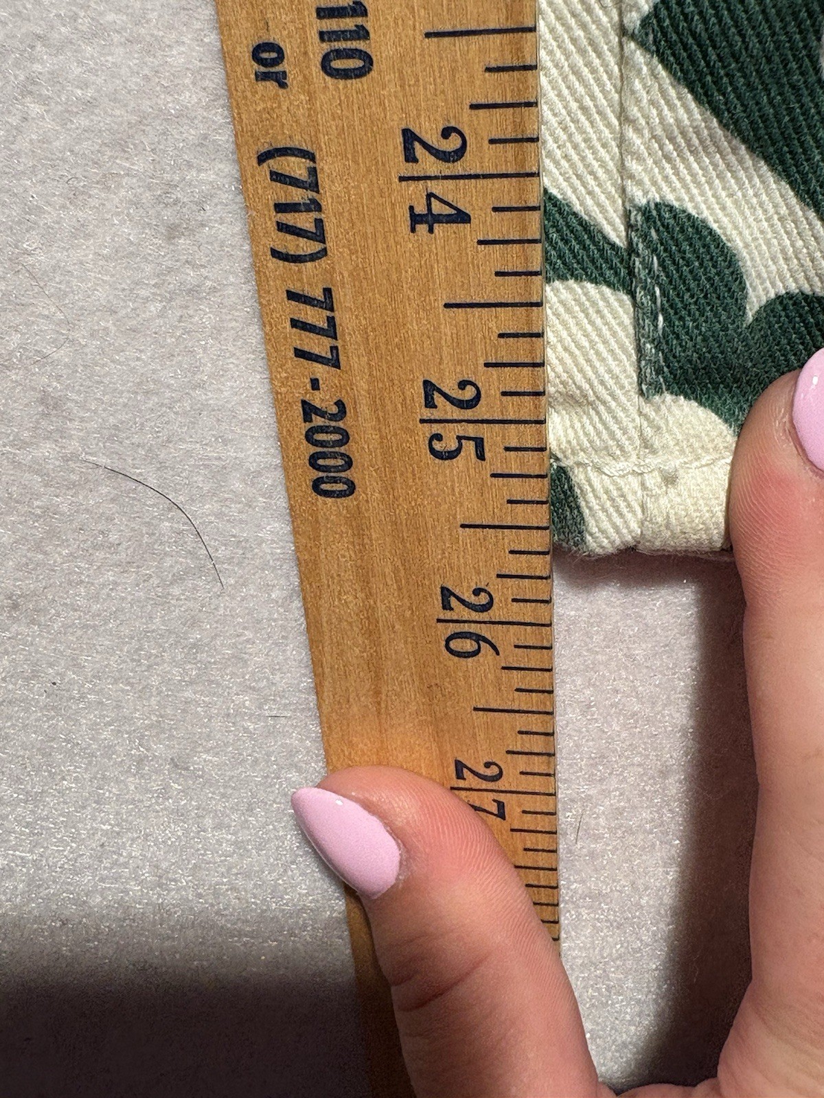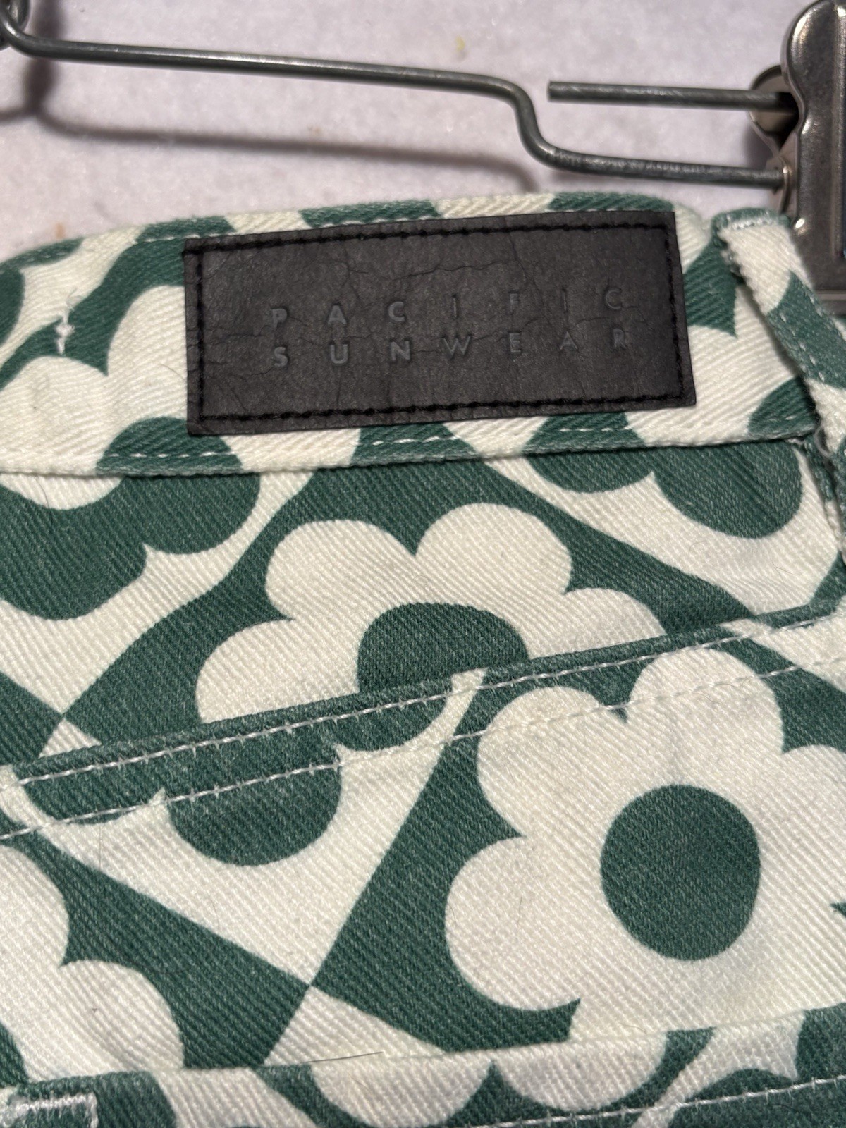 Wonderful whimsical pair of denim pants. Green and white floral. Would be great for St. Patrick’s Day. Retro style. High waisted. In excellent condition. All measurements are in pictures. Ships the next business day after payment.😊
