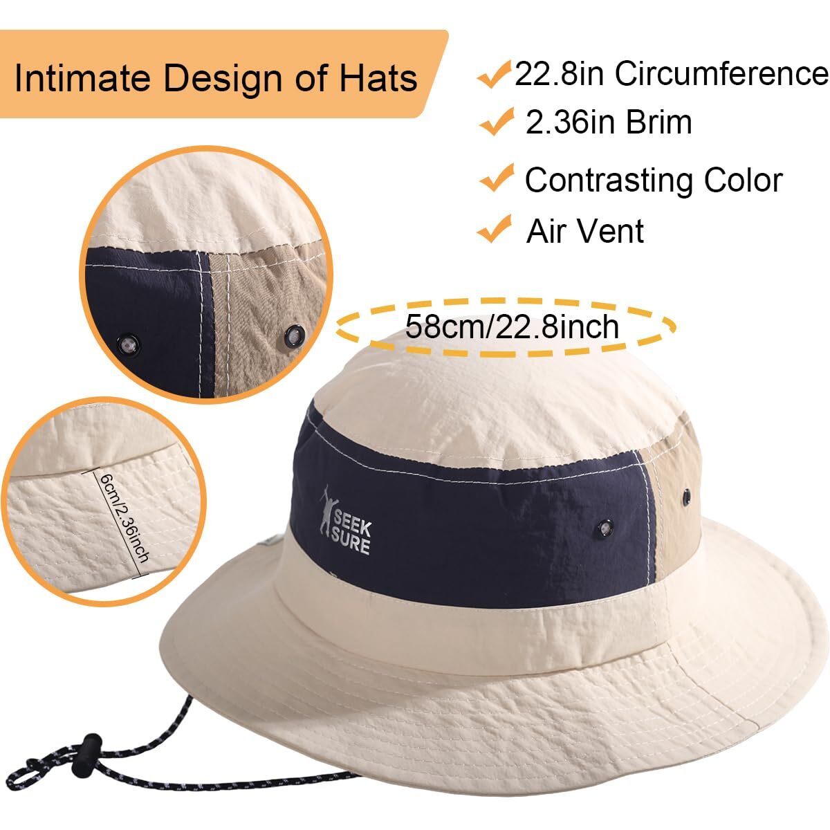 Bucket Hat Brim Sun Hat Packable Sun Protection Hat for Hiking Camping Gardening Outdoor Activities, Khaki Description and features Stylish and Practical: When traveling in the hot summer, you need a comfortable and beautiful sun hat that can solve your worries about skin, face,and neck being sunburned by strong sunlight One size fits most people: Hat Circumference: 20"-22.8", Hat Height: 4.33 inches, Brim Length: 2.36 inches, Chin Drawstring Length:12.99 inches Feature: Sweatband and invisible adjustable fitted strap, mesh lining and 2 vent on both side Lightweight Nylon Fabric: We use smooth and thin nylon to ensure you stay cool and comfortable all day, and to shield your face, neck and ears from harmful ultraviolet radiation Packable and Easy to Carry: Rolled up convenient to carry and save lots of space. It is a useful sun hat for beach, fishing, park, hiking, camping, travel, gardening or any outdoor activities Return Policy ⦿ All our products come with a 30-Day Return Policy. If you would like to return your item and you are within 30 days of the purchase, and it is still in its original condition, you can return the item by contacting us through eBay messaging. ⦿ If you are not 100% satisfied, please let us know the Detailed Problem,We will give you a 100% satisfactory solution ⦿ If you received an incorrect, damaged, defective, or item not as described, contact us for a partial/full refund or replacement on our cost. ⦿ Free Shipping and Free Return 30-Days Money Back Guarantee. ☎ For all returned products, buyers MUST contact us for the returning address. Shipping ⦿ We do not ship to a different address. we will ship to the address you provide on the ebay only. Please check your address before purchase. ⦿ It should take 2-4 business days for the product to reach your destination. ⦿ If the product doesn't reach your destination within the time limit, please give it an additional 1-2 business days in case of postal delays and/or possible technical issues. ⦿ We use a selection of shipping services such as UPS, FedEx, USPS etc. ⦿ We ship only to the 48 contiguous states of America. We do not ship to Hawaii, Alaska, US Protectorates, APO/FPO addresses. Local pickups are not offered. ☎ If it takes any longer than that, please do not hesitate to contact us to resolve the issues. Contact us ☎ Please contact us via eBay message. And your message will be replied within 1 business days. For any queries, please feel free to contact us, we will get back to you as quickly as possible. Customer 100% satisfaction is our first priority and goal. We are always working hard for maintain high standards of excellence and resolve your problem in best way. So your POSITIVE FEEDBACK is very important. If you have any problem of the item, please feel free to let us know before leaving your feedback. We will try our best to solve your problem. About us We are here to give you quality products, competitive pricing and amazing service in order to make sure you get the best deal online, Thank you for your business and the opportunity to serve you.