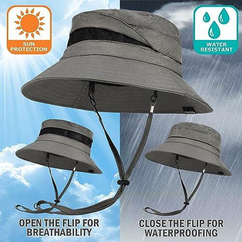 Return Policy Fast Delivery Trusted seller Bucket Hat with Strings for Men/Women, Packable Waterproof Sun Protection Boonie Hat for Beach Safari Fishing Hiking Product Description FUNCTIONAL & STYLISH: Unisex bucket hat is made of high quality polyester fabric, which has UPF50+ sun protection and waterproof function. Overall soft and lightweight. It protects you from the sun and wind, but also offers more options for matching your look. BREATHABLE & WATERPROOF: When the flip cover is opened, mesh vent can emit heat and sweat, and when the flip cover is closed, it can prevent rainwater from seeping into your head. ADJUSTABLE SIZE & CHIN STRAP: Rear adjustable elastic drawstring design, one size fits most adult head circumference 22-24 inches.. Detachable chin strap holds the bucket hat in place on windy days. PACKABLE & LIGHTWEIGHT: The bucket hat can be easily folded and packaged into your backpack, handbag or pocket, not take up any space. Great choice for regular daily use and outdoor activities especially like beach, pool, park, safari, travel, fishing, camping, hiking, gardening. NOTE: Due to different lighting effects between computer monitors, cell phone, the color of objects is little different from show pictures. Machine washable. 100% satisfaction with money back . If you are not satisfied with the bucket hat, please contact us, we will provide you with satisfying service. Shipping Returns Payment Shipping Shipping is FREE to all addresses other than APO/PO boxes in the lower 48 states. All our stock ships from US-based warehouses. Shipped via USPS or UPS (depending on location and package weight) Unless stated otherwise, all orders will ship within 24-72 hours of your payment being processed. Check our feedback to see the great reviews of FAST shipping we offer. Returns Seller does not accept returns Payment We currently accept payment via eBay managed payments only. Once payment is cleared, we will dispatch your shipment within 1-3 business days. Please refer to the "Shipping" tab for more information regarding shipping speed to your destination.