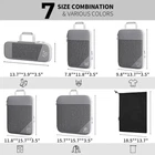 7 Set: The packing cubes comes with 5 different size zipper cubes (include large and small cubes), 1 shoes bag and 1 large drawstring bag Organizing Capabilities: The luggage packing bags keep your clothes, underwear, shirts, socks organized and compact, easy to pack and find when traveling everything had its own spot Compression: The compression zips can compress the volume of your clothing by up to 60%, is helpful for minimizing each compartment, space-saving for your luggage Storage Capacity: The travel organizer bag is marked with clothes type, you can find your accessories quickly. The large cube can hold your coat, jackets and sweaters, the small cube can hold little items easily Material: The suitcase packing cubes is crafted from nylon and mesh, it is not only strong but also can see what clothes is in the bags; can be used repeatedly and easy to clean