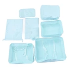 Feature: 1. Travel Organizer Set: Double sided large opening for easy organization. The smooth double zipper allows easy access for packing and organizing. 2. Classified and Convenient: Keep your travel items organized and easy to find with the clear and mesh top design. Top visible mesh design saves time searching for clothes. 3. Portable and Long Lasting: The widened handle design makes carrying effortless. Selected materials ensure durability and no odor. Machine washable and quick drying. 4. 7 Piece Set: Package includes 3 square clothing storage bags, 1 underwear storage bag, 1 waterproof shoe bag, 1 drawstring bag, and 1 digital pouch. Perfect for cosmetics, toiletries, and more. 5. Easy Storage and Cleaning: Soft, foldable travel organizers are lightweight and do not add extra weight to your luggage. They do not damage or soil clothes and are easy to wash and quick to dry. Specification: Item Type: Luggage Organizer Bags Set Features: Large capacity, orderly classification, convenient to carry, safe material, long lasting, simple and beautiful design Package List: 1 x Large Clothing Bag 1 x Medium Clothing Bag 1 x Small Clothing Bag 1 x Underwear Bag 1 x Shoe Bag 1 x Digital Storage Bag 1 x Drawstring Bag Note: 1. Travelling storage bag, neat and beautiful 2. Clip design, fixed clothing 3. Smooth zip without jamming 4. Handle design, more convenient to pick up 5. Full featured, good storage for travelling