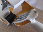 NEBS Product # 989, Tape dispenser, hand-held 2-inch tape gun. Dusty and has tape residue and name "Lewis" on one side, see photos. Shipping $12.25, USPS Smoke-free, pet-free home.