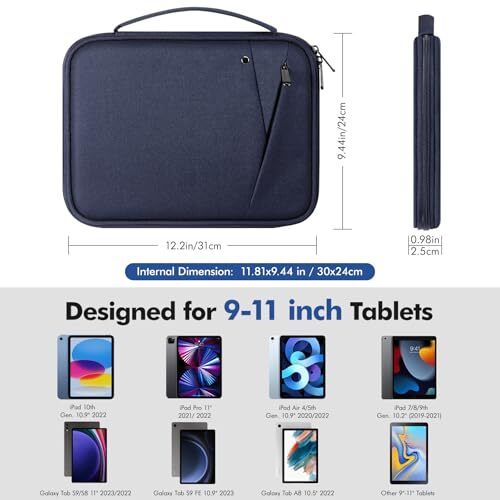 Return Policy Fast Delivery Trusted seller 9-11 Inch Tablet Sleeve Carrying Case with Handle, Padded Protective Travel Bag for New iPad Air/Pro 11 inch 2024, iPad 10th Gen 10.9, iPad Air 5/4th 10.9, iPad 9/8th 10.2, Tab S9/S8 11, Indigo Product Description 【Universal iPad Sleeve】- The tablet carrying bag is designed specially for 9-11 inch tablets, such as New 11-inch iPad Pro M4 2024, New 11-inch iPad Air M2 2024, iPad 10th Gen. 10.9" 2022, iPad Pro 11" 2021/ 2022, iPad Air 4/5th Gen. 10.9" 2020/2022, iPad 7/8/9th Gen. 10.2" (2019-2021), New Galaxy Tab S9/S8 11" 2023/2022, Galaxy Tab S9 FE 10.9" 2023, Galaxy Tab A8 10.5" 2022, Galaxy S7/A9+/A8/A7, Surface Go 2/3th 10.5" and other 9"-11" tablets. 【Meet Storage Needs】- T are classified pockets for your devices and related accessries, whose pockects include 9"-11" tablet pocket, pen loop, 3 x small mesh pockets, 3 x elastic loops and a zipped mesh pocket. The tablet sleeve with handle can keep your tablet and accessories in order. 【Excellent Protection】- With 3-layer material structure with protection features of splash-resistant polyester exterior, shock-absorbing pearl cotton Interlayer and wear-resistant interior lining, this tablet sleeve bag can protect your devices and other items from dust, scratches and shocks. 【Easy to Access & Carry】- With two-way zipper, it can offer a full 180° opening for convenient access to your device. The non-slip handles equipped make the bag carried comfortably to wever you go, or also pur the bag into a backpack or suitcase to carry. 【Portable Size】- External dimension is 12.2x9.44x0.98 inch (31x24x2.5 cm), Internal dimension is 11.81x9.44 inch (30x24 cm). Provide lightweight protection and accommodation for tablets without tacking on excess and surely unwanted bulk. Shipping Returns Payment Shipping Shipping is FREE to all addresses other than APO/PO boxes in the lower 48 states. All our stock ships from US-based warehouses. Shipped via USPS or UPS (depending on location and package weight) Unless stated otherwise, all orders will ship within 24-72 hours of your payment being processed. Check our feedback to see the great reviews of FAST shipping we offer. Returns Seller does not accept returns Payment We currently accept payment via eBay managed payments only. Once payment is cleared, we will dispatch your shipment within 1-3 business days. Please refer to the "Shipping" tab for more information regarding shipping speed to your destination.