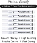 Paint Pens White Marker 6 Pack, Acrylic White Permanent Marker,White Paint Pens for Rock Painting Stone Ceramic Glass Wood Plastic Glass Metal Canvas Water-based Extra Fine Point white paint markers-These white ink pens are equipped with Italian ink and a Japanese nib to provide the upmost quality to any professional or beginner. For Rock Painting and More- Enjoy creating art & craft projects on a variety of surfaces like: Canvas, fabric, metal, porcelain, treated wood, plastic, terra-cotta, polymer clay, kindness rocks & more. Quick Drying and Water based- Your premium acrylic paint pen kit features smooth colors to produce true, consistent shades and are resistant to water, fading, and abrasion. Fine Point Tip - The Easy-to-Use fine point nib is well-suited for precise work or hand-lettering. These markers are perfect for both fine details and filling in large areas. Long Lasting-While other pens crack under heavy use, our richly pigmented acrylic paint marker pens set stays fray free.