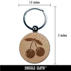 Pair of Cherries on Stem Cherry Fruit Engraved Wood Round Keychain Tag Charm