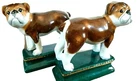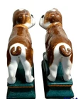 INTERNATIONAL buyers: Please contact me before purchasing your item to make sure weight and size is correct. Thank you! You will receive exactly the item shown in the gallery photos. Please visit my store to see hundreds of items. I carry antique, vintage, home furnishings and accessories. Item Description Rare Late 19th C STAFFORDSHIRE Bookends - English Bulls - A Pair Item Details Brown and white pottery Pug Dogs in Staffordshire style. These guys have very nice details and wonderful coloring. They stand on pedestals painted in a rich British green color and soft gold rope trim. Typical of Staffordshire they have a vent hole located in the rear. These are either old Staffordshire or a similar maker, they are unmarked. At that time the town of Staffordshire had many pottery makers and they are all considered Staffordshire pottery. Dimensions 7 h x 7 w x 3.5 d Condition Notes Excellent condition. Better than expected. Dear E Bay buyer, I have done my best to accessed this item and give an accurate description. Please see my photographs for a full description. I am not solely an expert on all types of items. If there is anything I can do to assist you further, if you need more detailed photographs please don't hesitate to ask me. I would be happy to help. Warm regards, Donalee REF VTES-12-5244 Local Pick up: San Diego area *Shipping to 48 states. Extra charges apply to Hawaii and alaska.