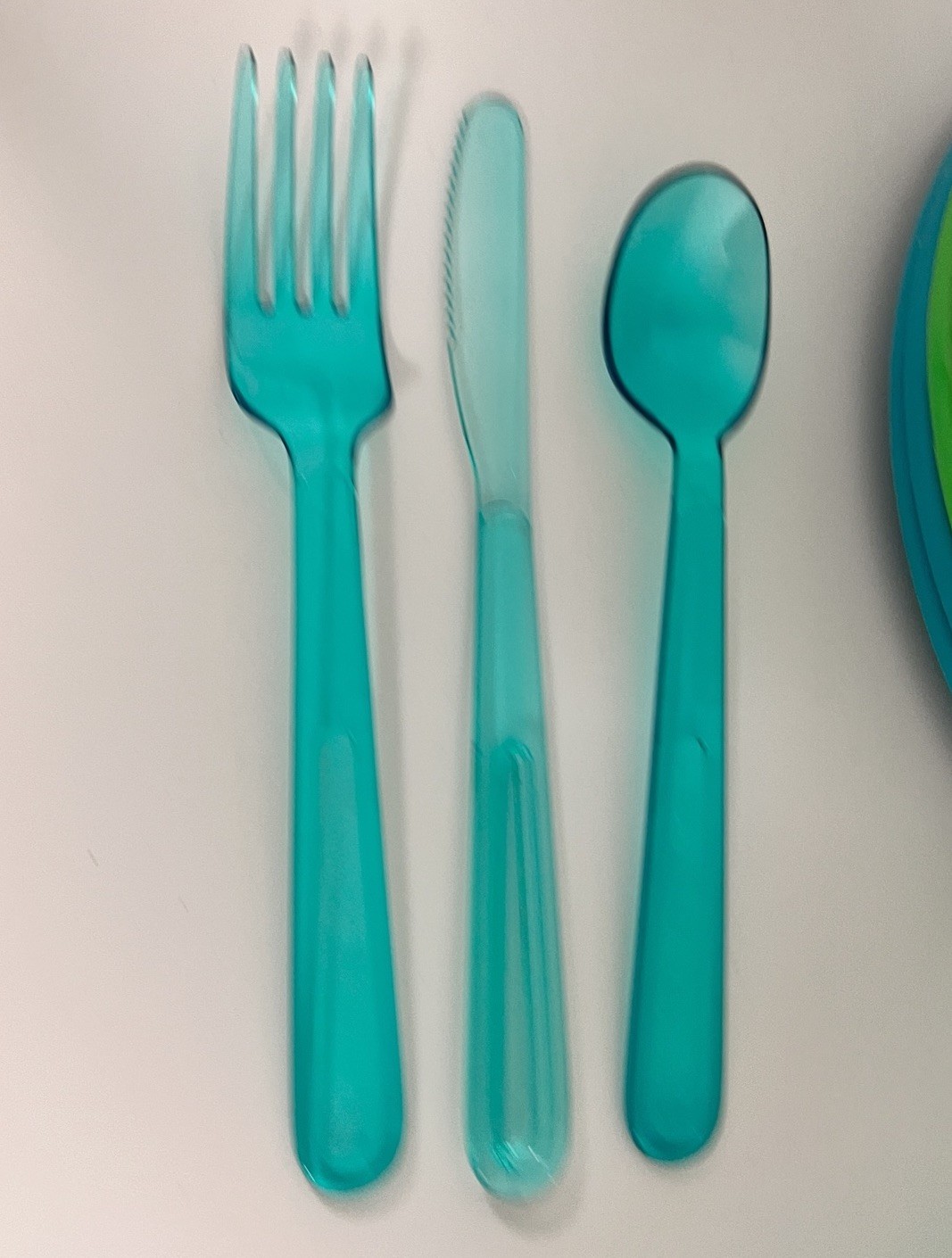 The Pampered Chef 10” Outdoor Party Plate Set of 6 Retired Picnic Cookout BBQ 6 plates with cup holder 6 spoons 6 forks 6 knives