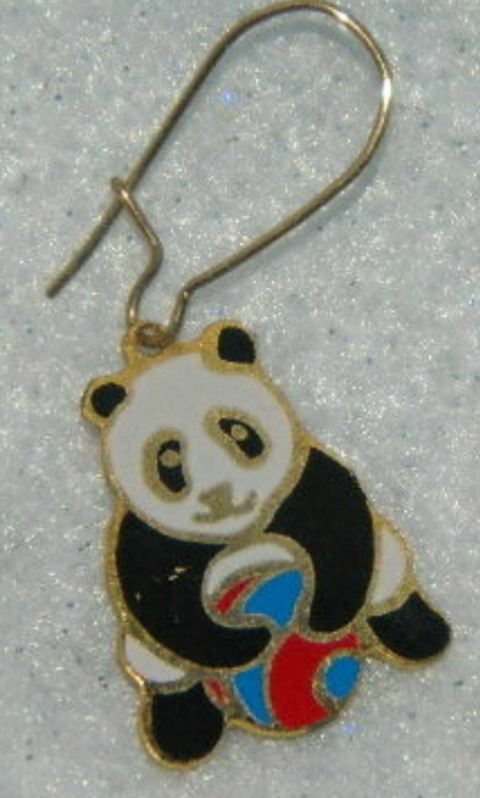 HOWIES BOOKS & GOODIES COLLECTABLES FROM CHER'S GOODIES DESCRIPTION AND CONDITION: Panda Bear Drop Pierced Earrings Nice Condition! 1" Drop approx. 1/2" width Black & White Panda w/ blue & red ball all is trim in goldtone color.. Unmarked