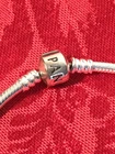 ** Only imperfection is that it could be slightly tarnished from being in a dresser drawer and never worn.*** The Pandora 925 Silver Snake 8 inch Bracelet with Special Sister Heart Charm and Present Gift Box Charm is a beautiful and meaningful piece of jewelry perfect for special occasions like Mother's Day, Christmas, or birthdays. The sterling silver bracelet features a charming heart-shaped charm and a slide charm in the shape of a gift box, making it a perfect gift for a sister. The snake chain design adds a stylish touch to the bracelet, which is stackable and can be worn comfortably on the wrist. A lovely choice for expressing love and appreciation for a special friend or family member. In a smoke free home.