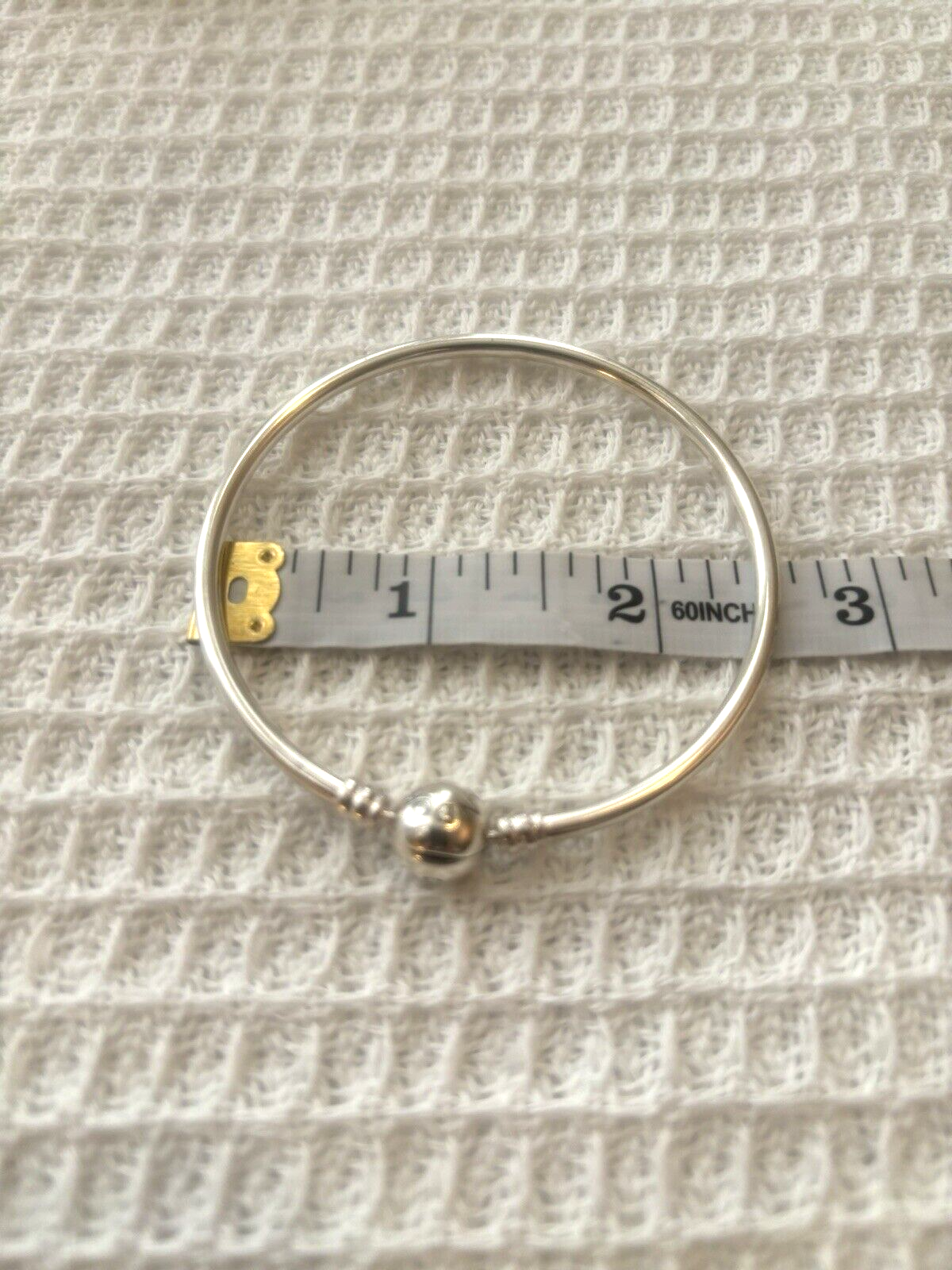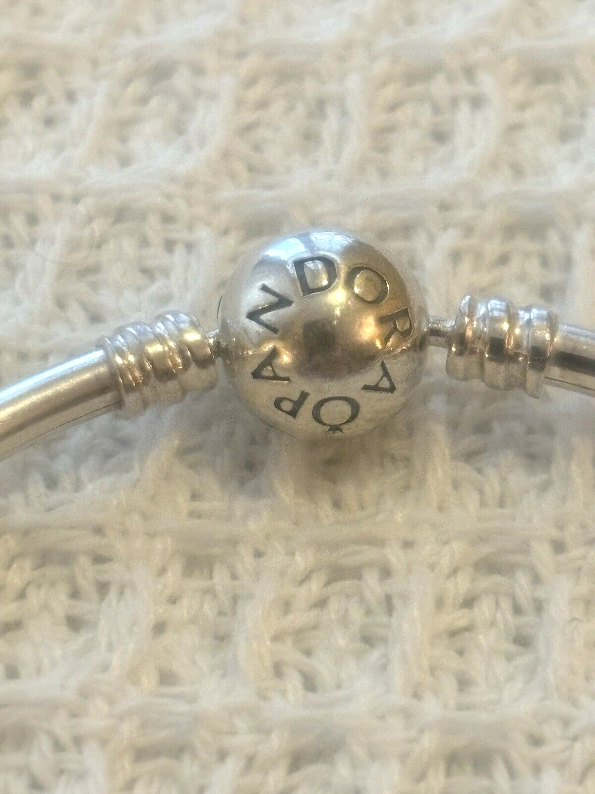 Pandora bangle style charm bracelet. 925 Ale sterling silver. Bracelet ball opens to add charms. Well cared for in nice condition (see photos). Smoke free home.