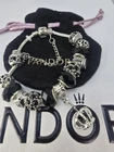 The Pandora Charm Bracelet is a beautiful piece of jewelry made of sterling silver with a snap closure. It features charms in the shapes of a heart, ferris wheel, love, handbag, and more, all colorful and eye-catching. This bracelet is perfect for various occasions such as engagements, birthdays, anniversaries, and special holidays like Christmas and Valentine's Day. It comes with 8 gemstones in different colors, including aqua and crystal, making it a versatile and stylish accessory for any woman's charm collection. Made in Thailand, this bracelet is stackable and can be personalized to suit any charm lover's taste. Please note: Only the Sterling Silver Bracelet is Authentic Pandora. The charms are European style. Remove jewelry before going to bed or participating in physical activity.Exposure to harsh chemicals will result in tarnish of your jewelry,Also perspiration,perfumes,hand sanitizer,chlorine,salt water and silver polish must be avoided. Thank you.