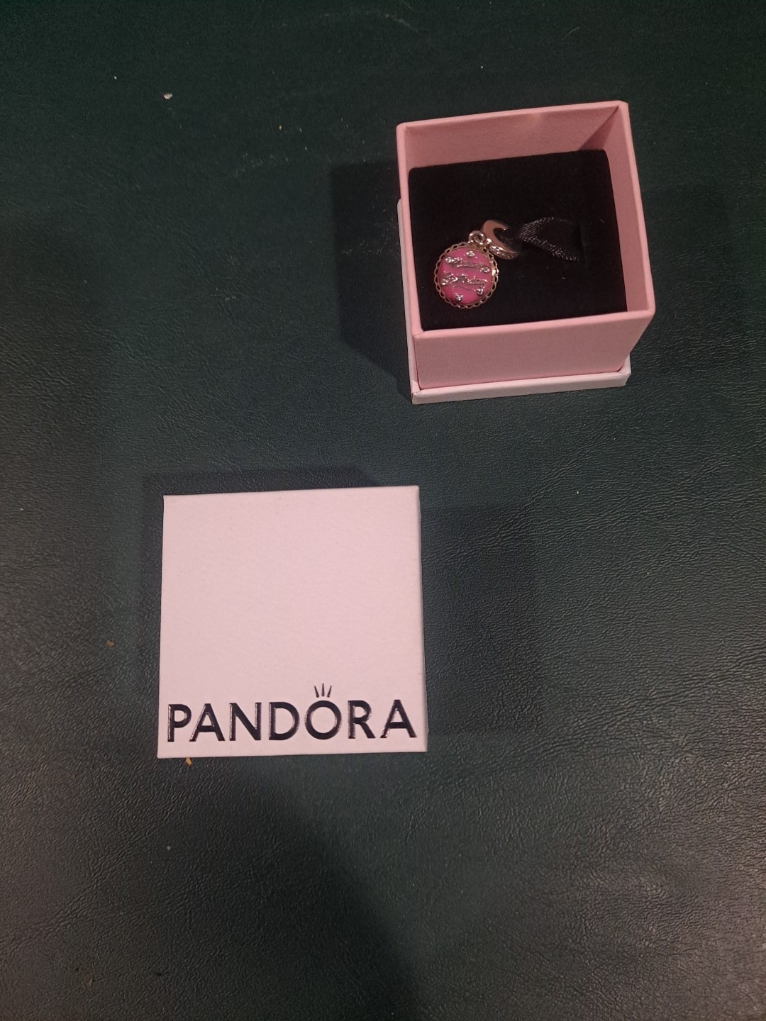 This Pandora charm is a brand new dangle charm designed for a birthday occasion. The charm is made of silver with excellent cut grade cubic zirconia stones in a pavé setting, featuring a stackable design. It has a charm type of dangle and is adorned with enamel material in silver color. The piece is not signed or personalized, and it is part of the Pandora brand, making it a stylish and versatile addition to any charm bracelet collection.