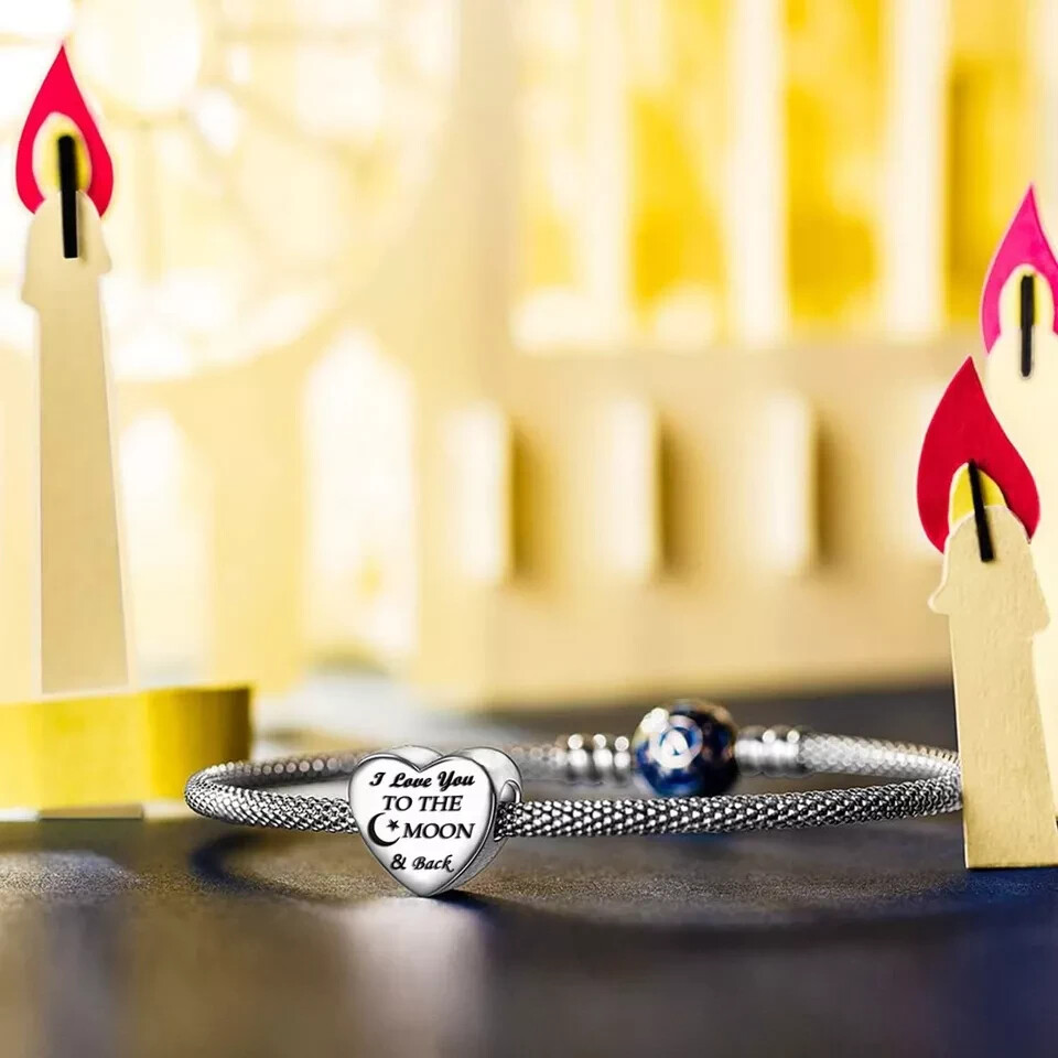 MATERIAL: Engraved "I Love You to the Moon and Back",charm made with 316L stainless steel,this bead charm perfect fits Pandola bracelets.Compatible with Biagi, Troll and Chamilia European bracelets. Fit for both necklace and bracelet.The bead charm are proved to be body-safe after rigorous contact test. Without any harmful ingredients, it's nickel-free, lead-free, cadmium-free and anallergic. PERFECT GIFT: Charm equipped with beautiful fine gift velvet drawstring bag. The best gift for yourself, your family, your friends and the ones you love.Ideal Gifts for Christmas, Mother's Day,Birthday, Valentine's Day, Graduation Gifts, Bridal Gifts or your other special occasion you would like to make memorable. FEATURE: Charm Size: 15mm*15mm.Hole Size : 4.8mm,weight: 3.2g. DESIGN CONCEPT: The design of bead charm is inspired by "love". The delicate design makes charms look more layered and the shiny zircons make your visual sensation more obvious. Seller Warranty: You can have our most sincere service. If there are any problems with the purchase, please feel free to contact us, any problem you have can be solved within 24 hours.