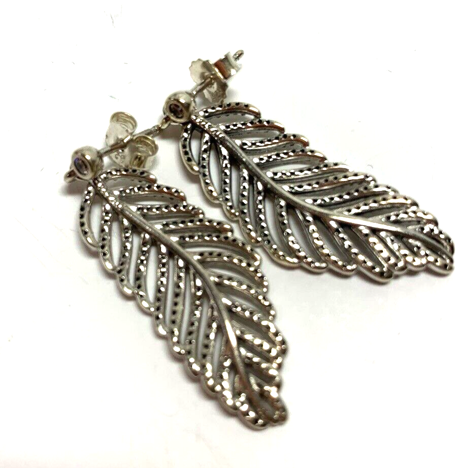 Crafted in sterling silver in a leather shape adorned with Cubic Zircona. Stamped S925 Ale. Butterfly clasp marked 925 Dangle 1.5" ThriftLOVE is a nonprofit thrift shop that offers mentored sustainable employment to adults with special needs and/or limited skill set.