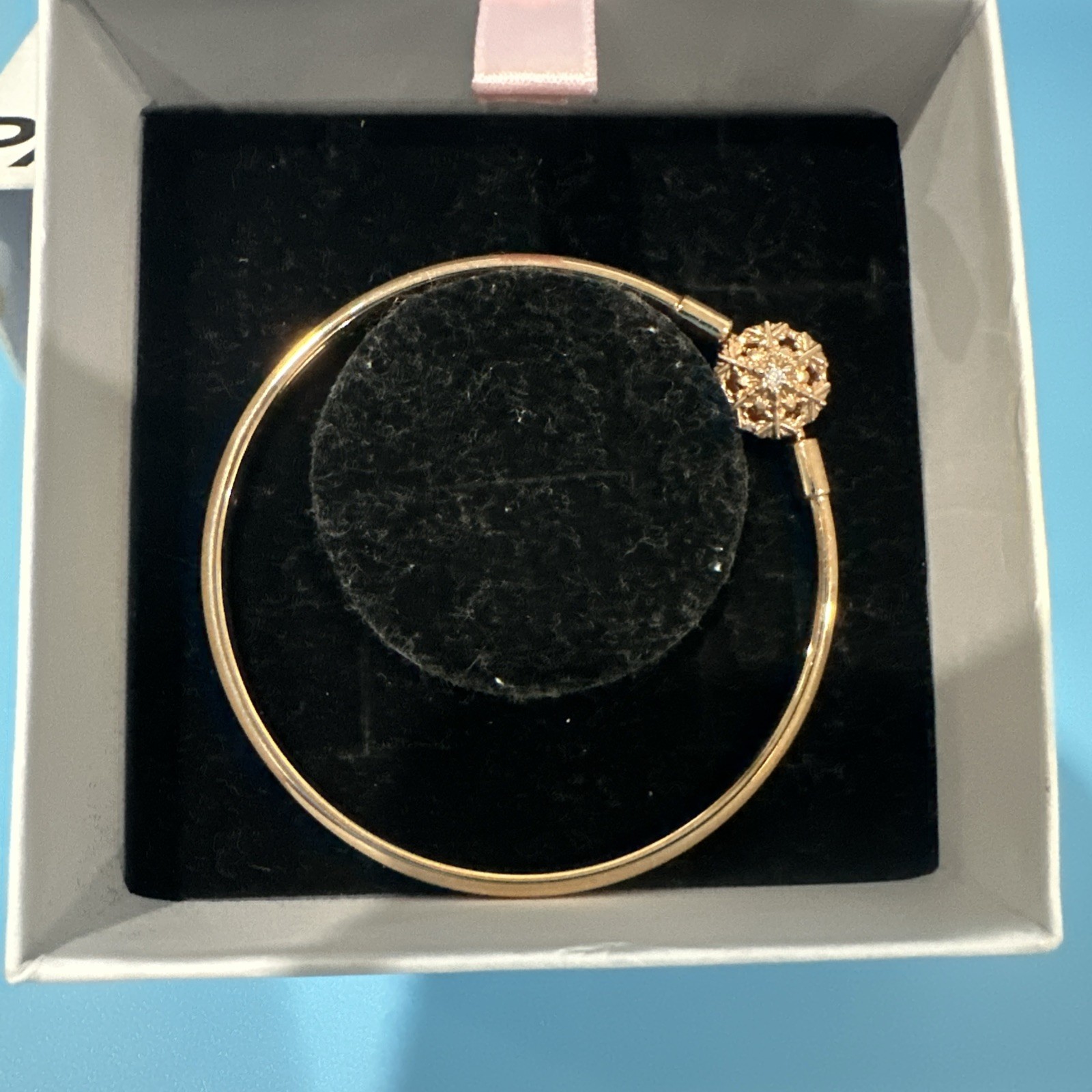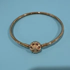 Pandora Sparkling Snowflake Rose Bangle Bracelet Authentic Box Dust Bag This detailed 14k rose gold-plated bracelet features a special snowflake motif as its clasp, with intricate openwork details, creating a win try effect. Small faceted and cut-out snowflake shapes reach out from the center of the snowflake,
