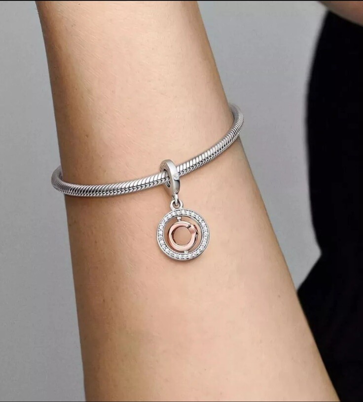 Orders received by Feb 10 will ship on Feb 11. Most will arrive in time for Valentine’s Day (depending on ZIP—those sent to western U.S. may or may not). Official PANDORA: This authentic piece of PANDORA jewelry is ready to gift to your loved ones on Mother's Day, Christmas, birthdays, anniversaries, or any special occasions with an official PANDORA gift box Beware of fakes! Add a touch of elegance and uniqueness to your jewelry collection with this beautiful Pandora Rotatable Round Halo Insert Heart Dangle Charm. Crafted with high-quality sterling silver and adorned with sparkling cubic zirconia stones, this charm is perfect for any occasion. The round clasp closure and halo setting style give it a stunning look that is sure to catch everyone's attention. This charm is engraved with the letter "L" and the word "Love" in a beautiful font, making it a perfect gift for someone special or to show off your own personal style. The dangle charm type and unique design make it a must-have for any fashion jewelry enthusiast. Please note: this is a charm designed for a charm bracelet. It is ONLY the charm. Bracelet (as shown in photo) is NOT included.