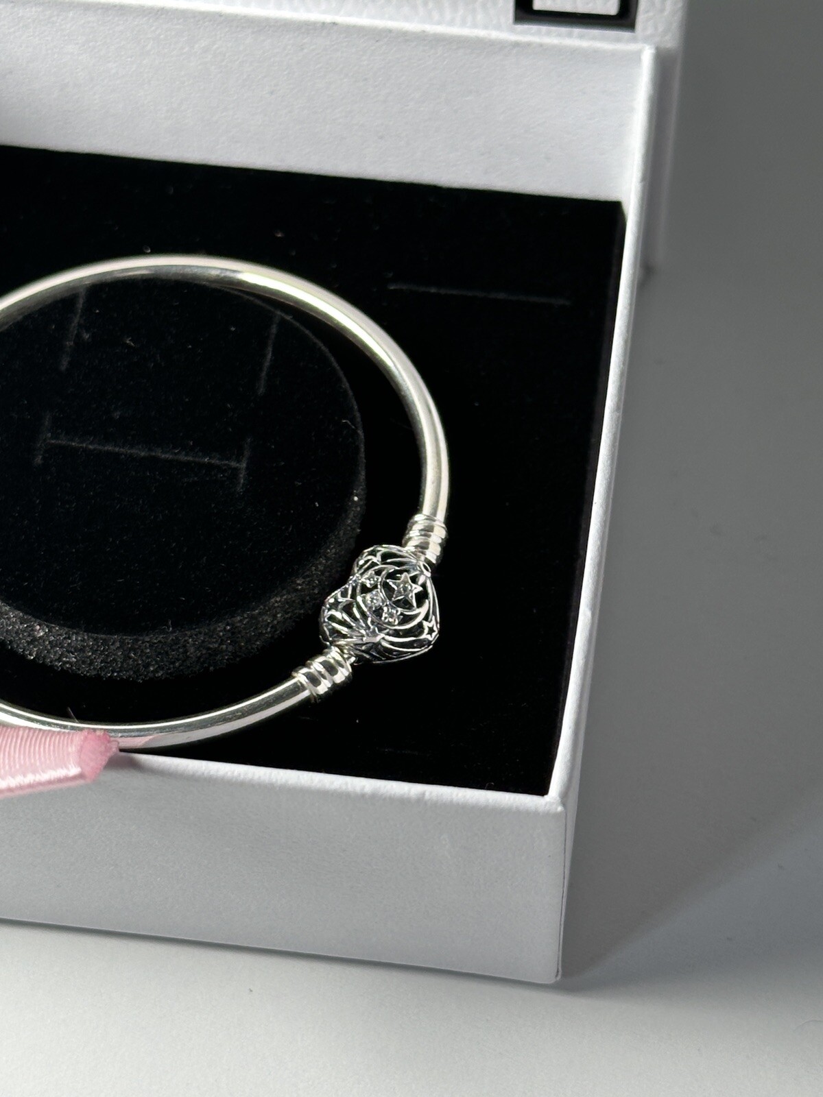 The Pandora Celestial Bingo Charm Bracelet is a sterling silver bracelet featuring charming star and heart-shaped charms. This bracelet is designed in a charm style, perfect for adding a touch of celestial glamour to any outfit. The combination of stars and hearts adds a whimsical and romantic touch to the overall design, making it a versatile and eye-catching piece for everyday wear.