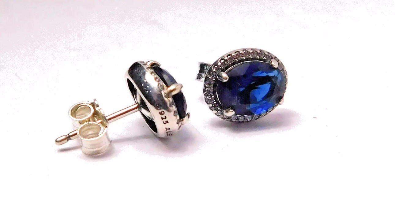 Comes with earrings and dust bag. Add a touch of elegance to your outfit with these beautiful Pandora Earrings. The Sparkling Statement Halo Studs feature a lab-created oval blue crystal as the main stone, surrounded by cubic zirconia accents. The sterling silver earrings are butterfly closure for secure wear and are perfect for any occasion, whether it be Mother's Day, engagement, wedding, graduation, Christmas, anniversary, Father's Day, birthday, christening, confirmation or communion. The halo setting style and excellent cut grade make these earrings a vintage authentic addition to any jewelry collection. Made in Thailand, these earrings are a great way to show your love and appreciation for family and friends.