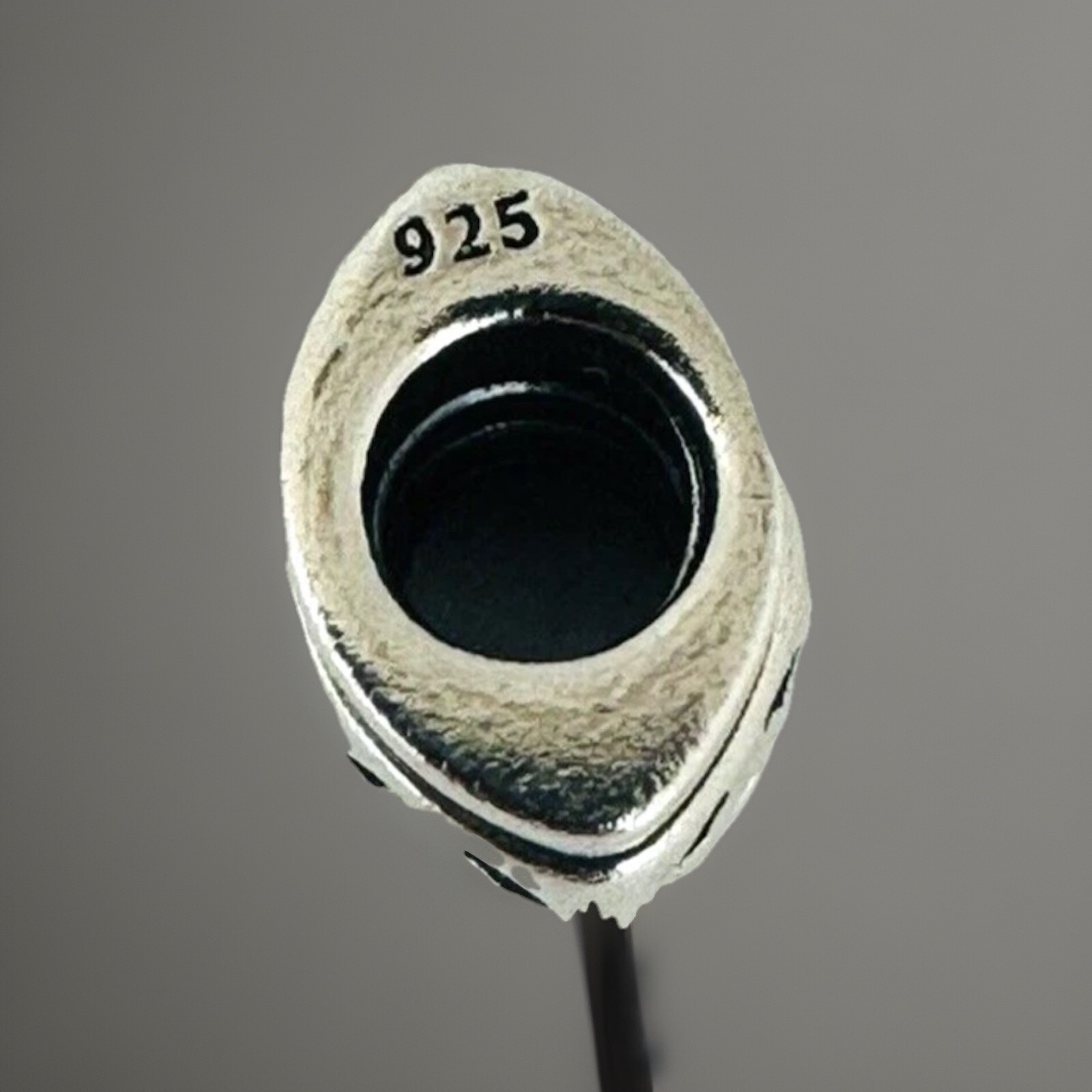 This Authentic Pandora Sterling Silver Skipping Stones Charm is a vintage-inspired piece perfect for special occasions like Mother's Day, engagements, weddings, and birthdays. The oval charm is crafted from sterling silver and features a stackable design, making it a versatile addition to any charm bracelet. Signed by Pandora and made in Thailand, this charm exudes beauty, art, and love with its traditional design. Ideal for adding a touch of elegance to any jewelry collection.” No original box/ pouch “